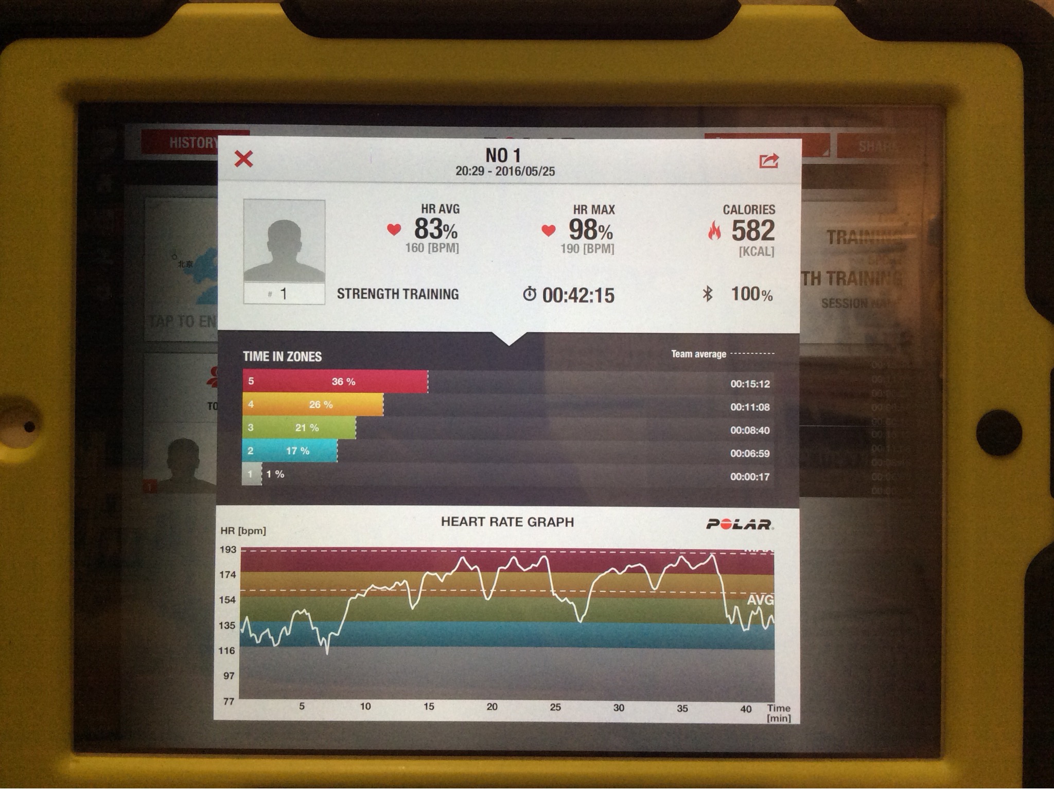 心拍計を着けて行いました。シナジービートで着けてるのと一緒です。
