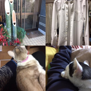 右上 : 毎度しわしわで着たいシャツをアイロンされたピンピンのシャツ