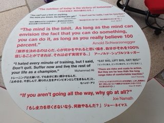 外にあるテーブルには、著名人の名言が書いてありトレーニングに対するモチベーションを与えて