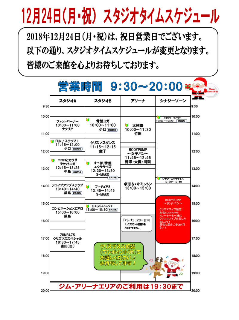 みなさん12/24(月・祝)のプログラムはもう確認できましたか??