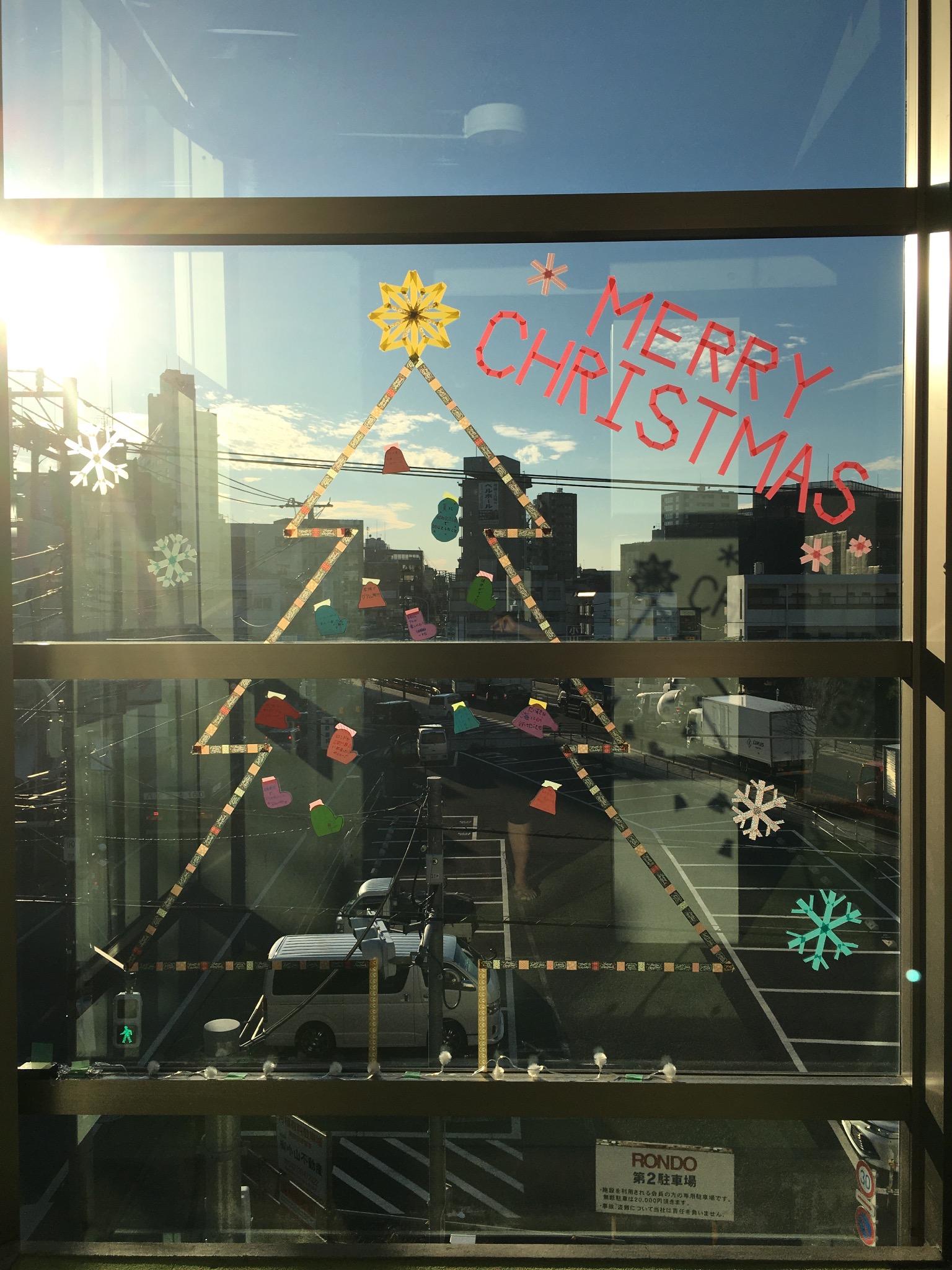 階段を上った窓ガラスにツリーを作りましたので、オーナメントとして飾ります🎄
