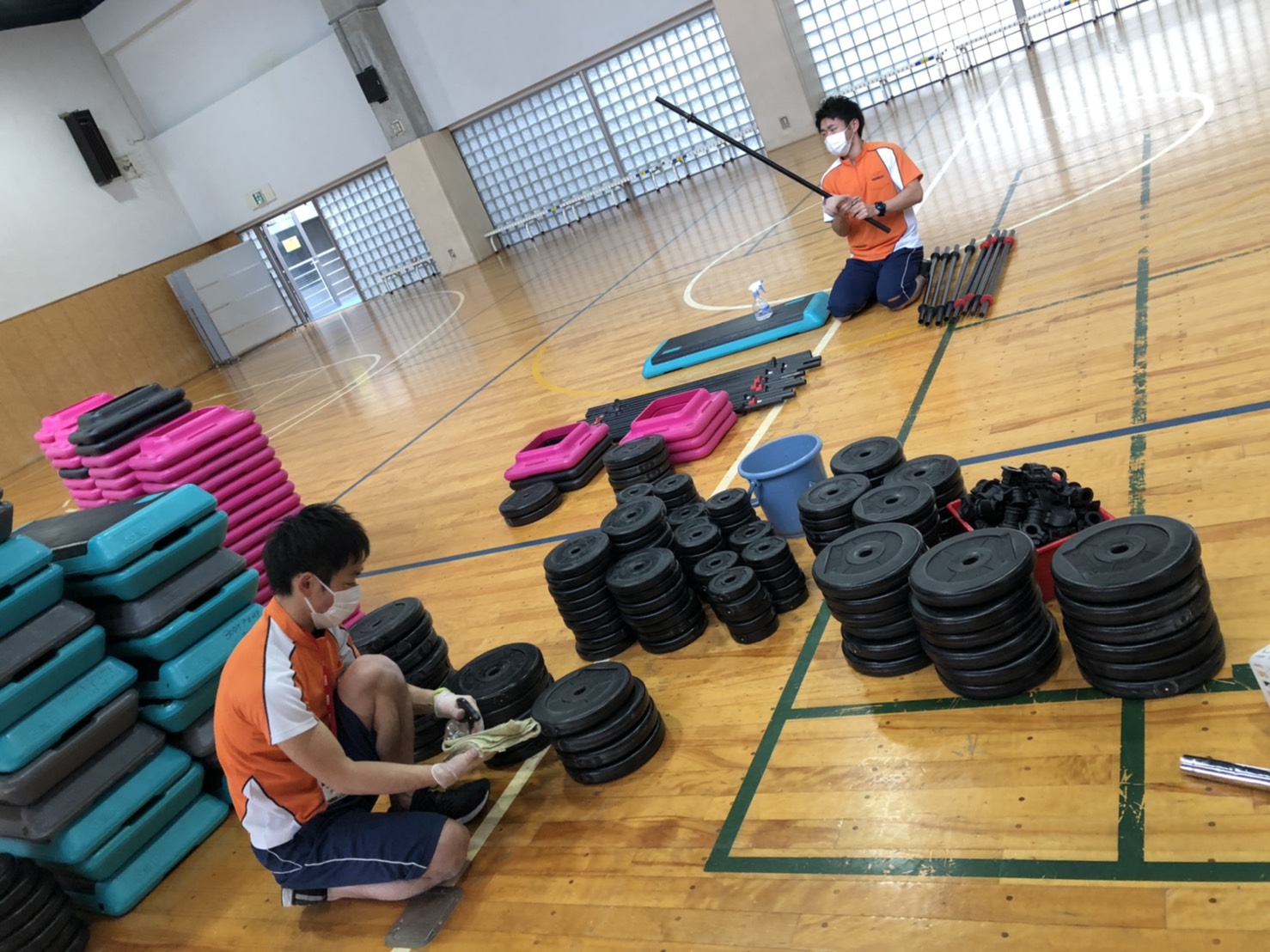 マット、ボディパンプツールを清掃・消毒を行いました!