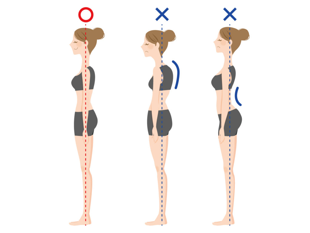 次に、横から見た姿勢は踝(くるぶし)、膝、股関節、肩、耳が一直線所にあることが良い姿勢と言われます。