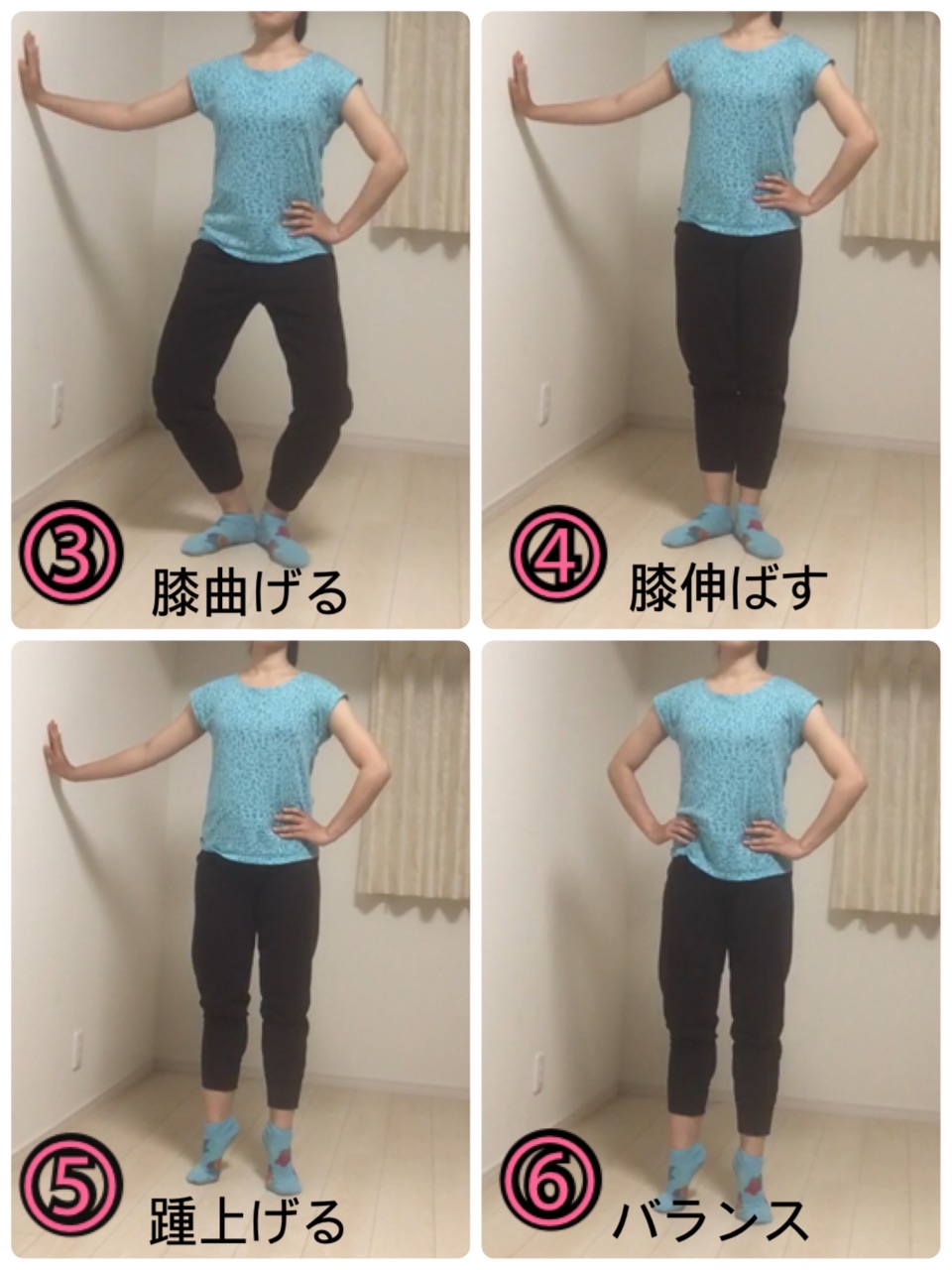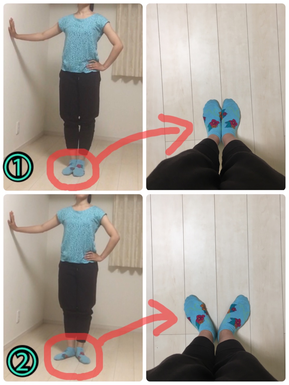 最初は壁に手をついたまま降りて大丈夫です!踵を上げたあと、手を離さずゆっくり降りるところから始めてみましょう!