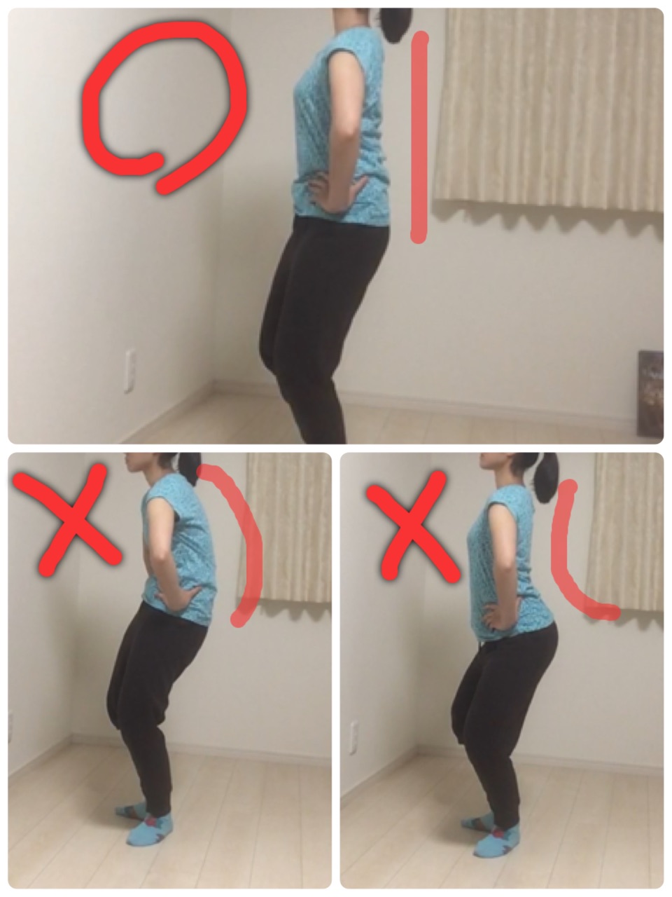 上体はまっすぐに!膝を曲げるプリエをすると、背中が丸まったり反り腰になりやすいです。