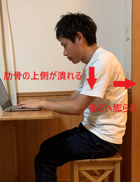 ②潰れた分、後ろへ肋骨が膨らみます(背中が丸くなる)