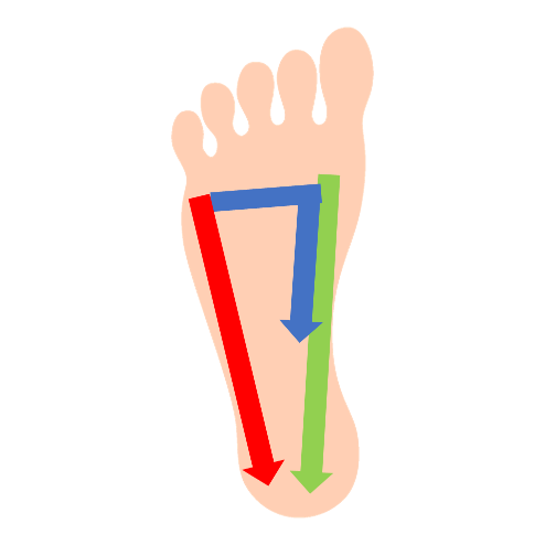 この3つの矢印はそれぞれ足のアーチを作るのに働いてほしい筋肉の場所です。