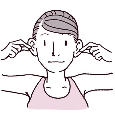 ↪両耳タブを手でつかみ、10秒間引っ張って離す