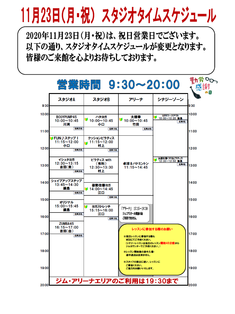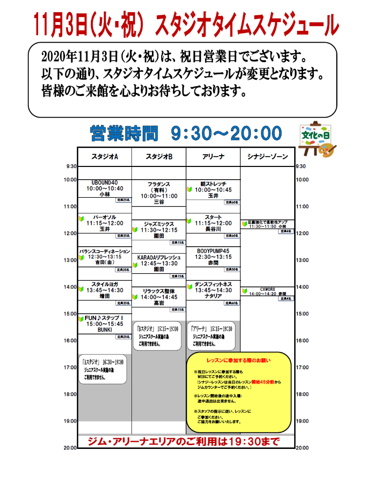レッスンタイムスケジュールも変更されていますので、ご確認ください!