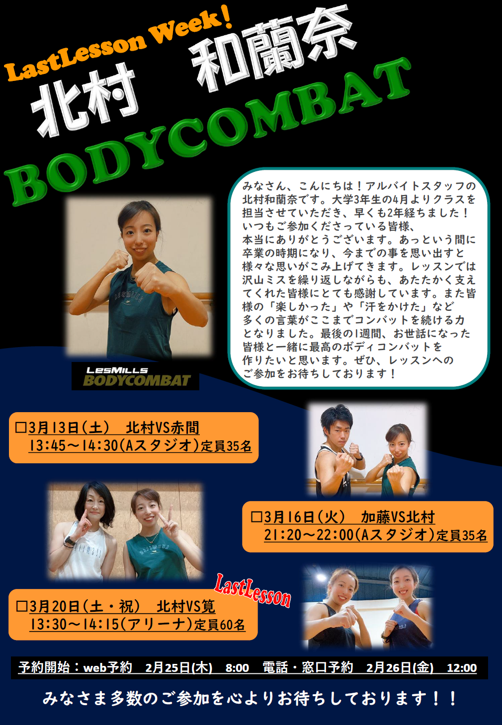 ジムスタッフ、北村さんの卒業レッスンもございます!