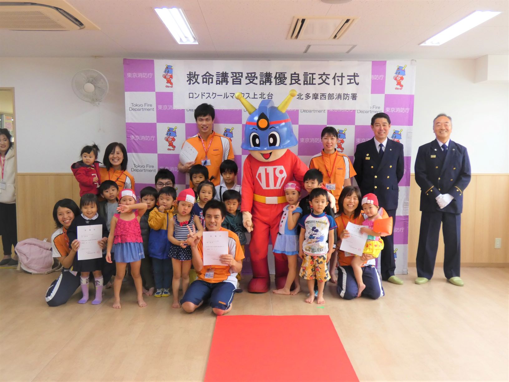 本日東京消防庁より救命講習受講優良賞の表彰と