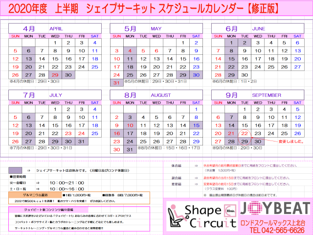 3月に郵送させていただいているスケジュール(カレンダー)との変更点が