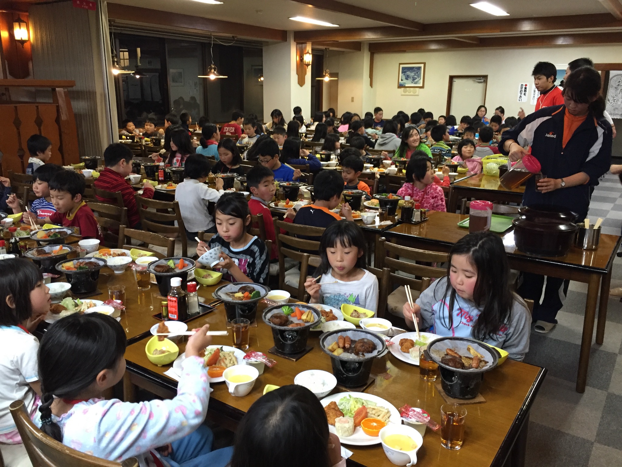 夕ご飯をたくさん食べて、今は部屋で友達同士で遊んでいます。