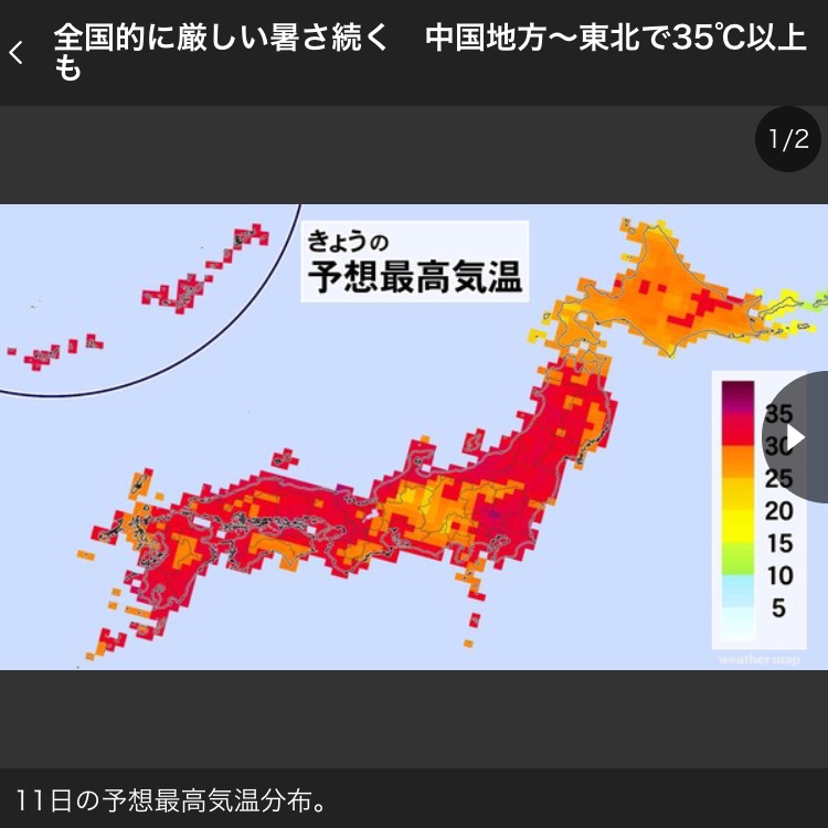 35℃ 山形、福島、熊谷(埼玉)、富山、鳥取など