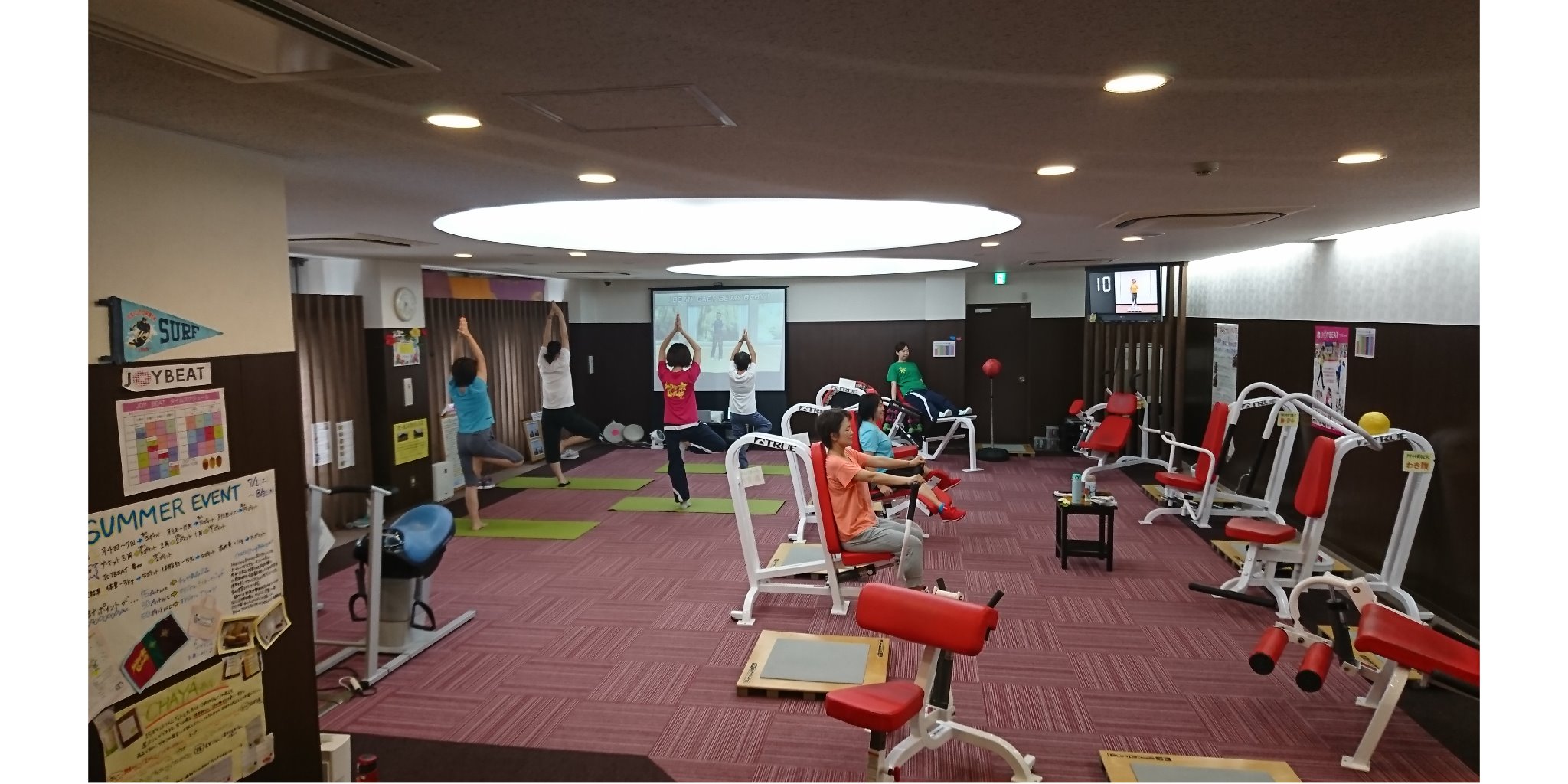 また、一日に3~4回、映像型プログラムのJOYBEATのレッスンが開催されます。(JOYBEATのスケジュールはHPのトップページをご参照ください)