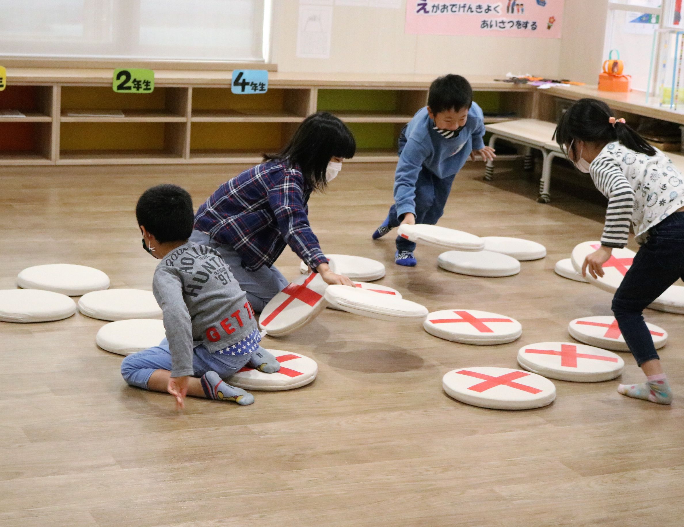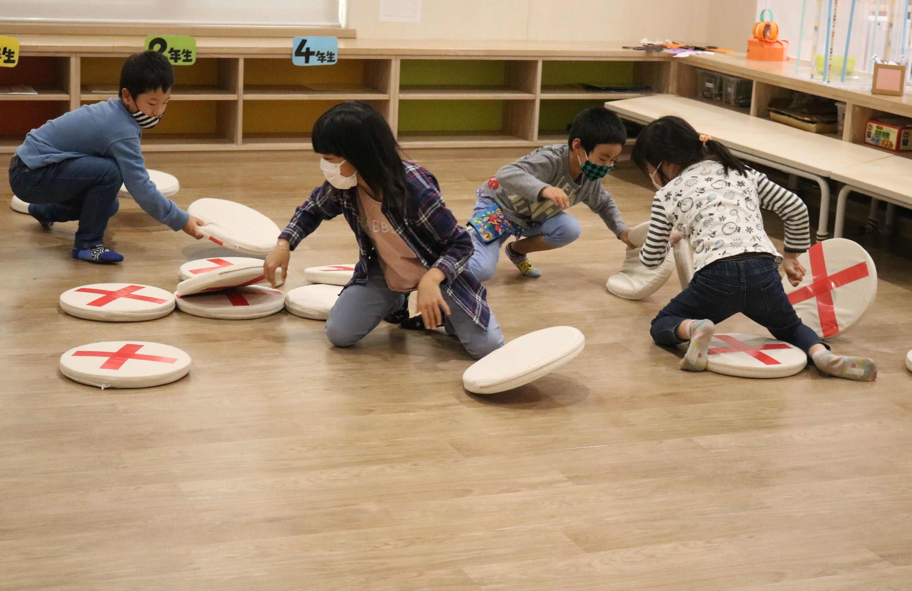 今日はみんなで体と頭を使う「ひっくり返し競争」をやりました。