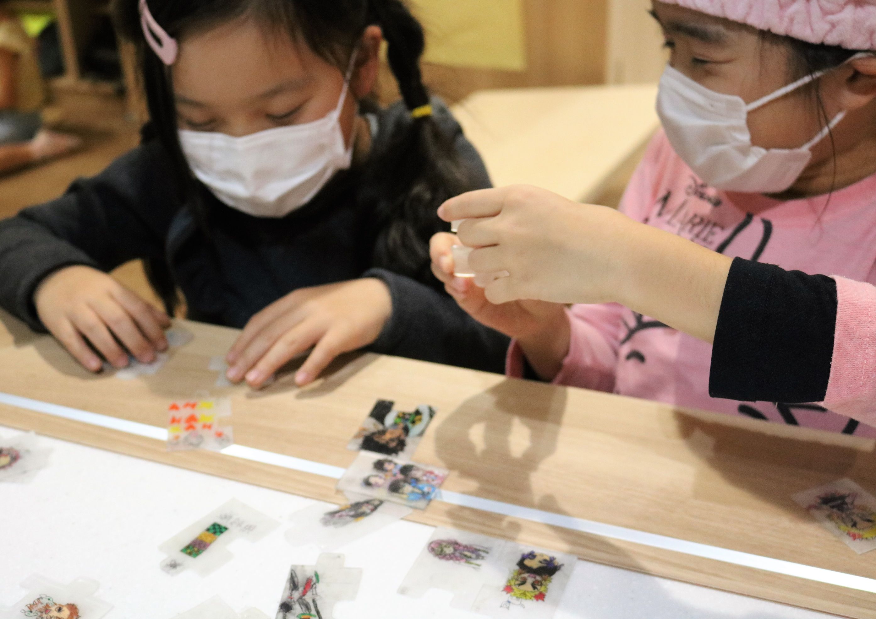 みんなの作ったプラ板のパズルを合わせてみたり…