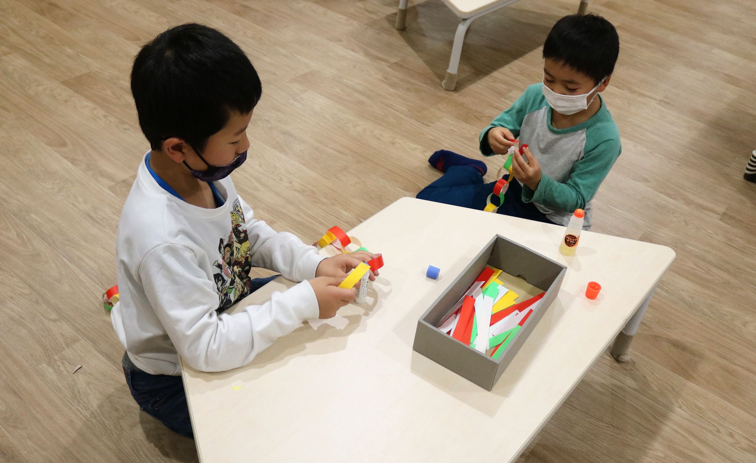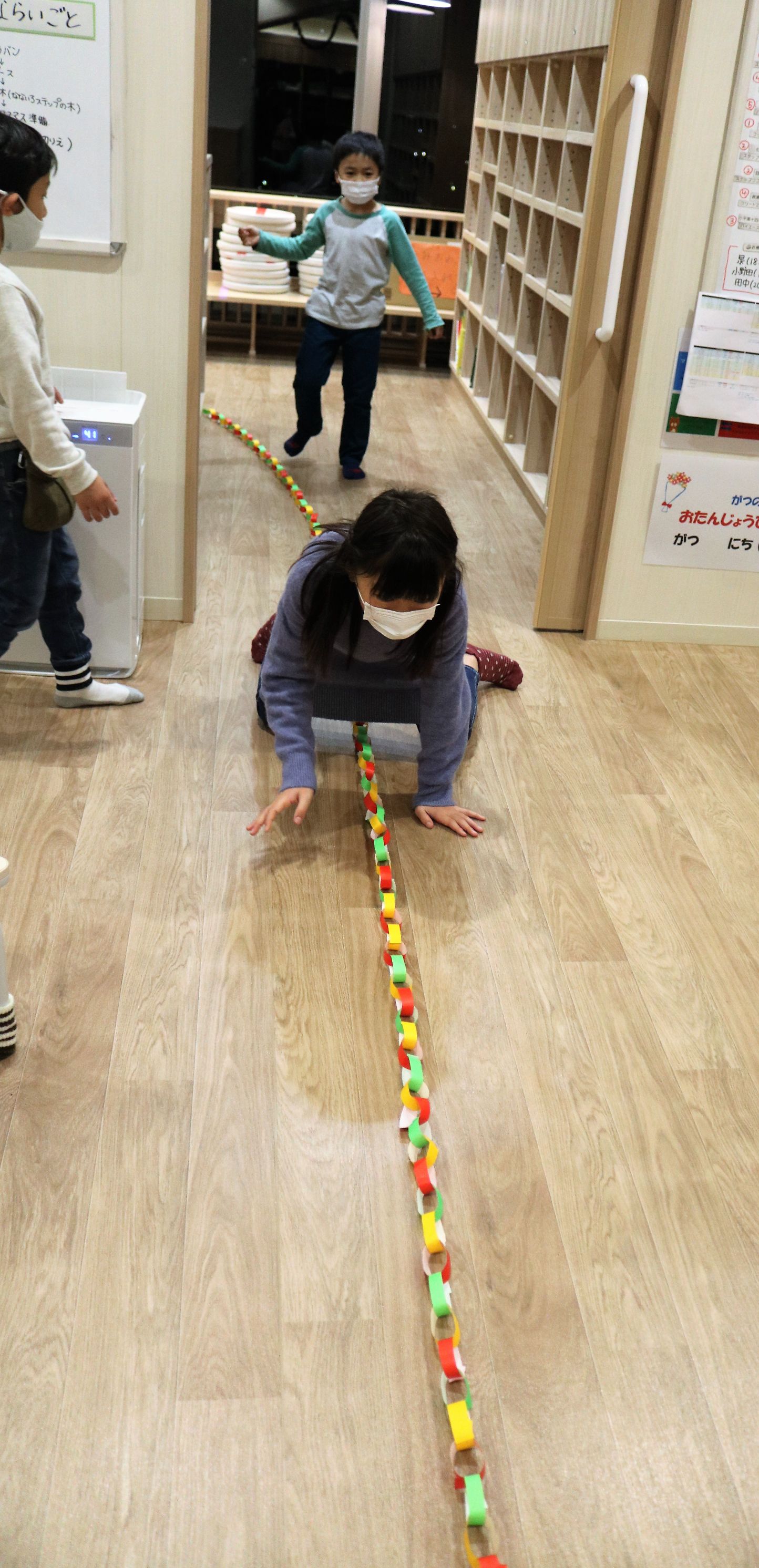 「みんなで作って繋げよう。長いの作ろう!!」と