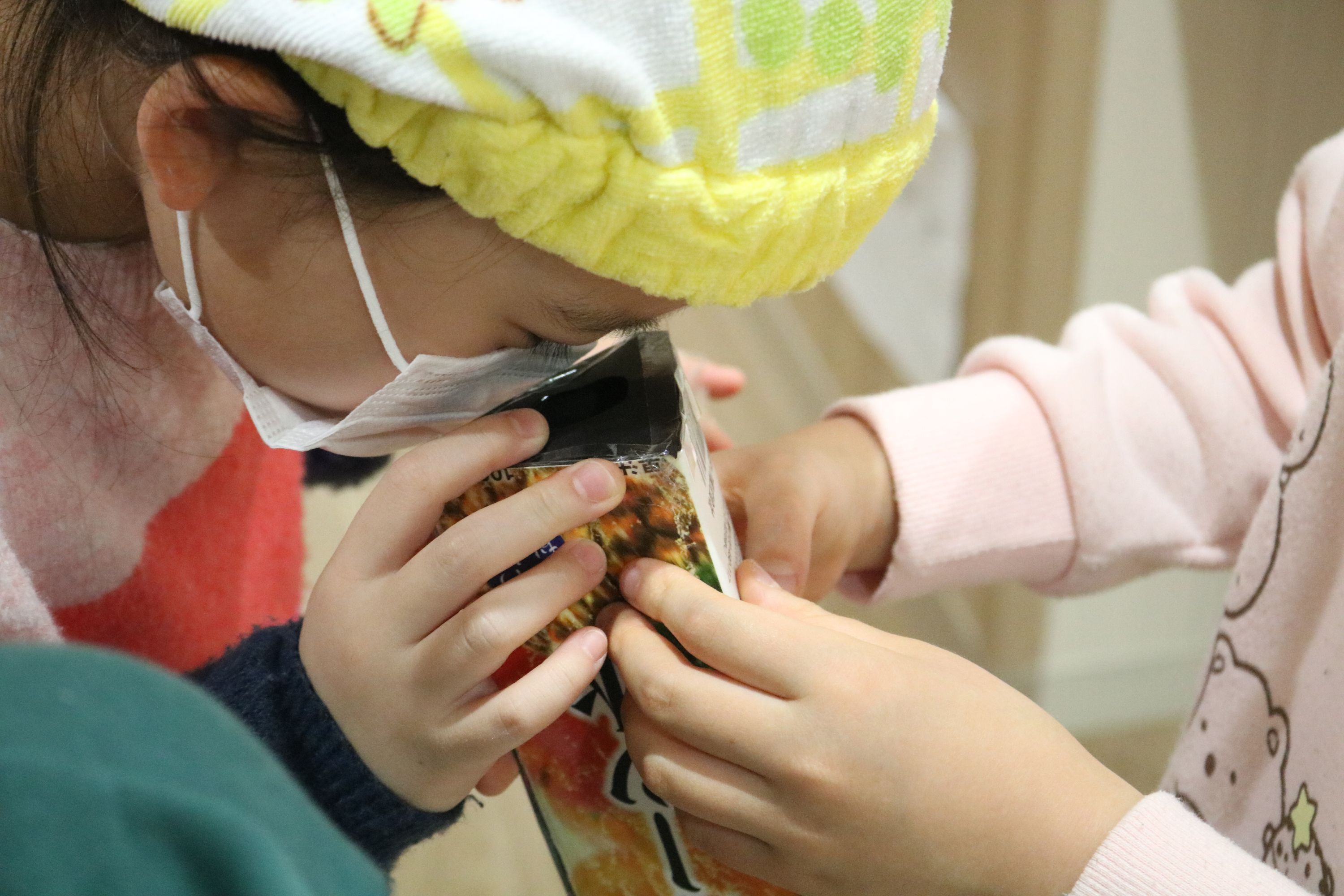 今日は久しぶりの雨で、ちょうどお迎え時間に強い風と雨になりましたが「ぬれた~」と笑顔で元気に帰って来ました。