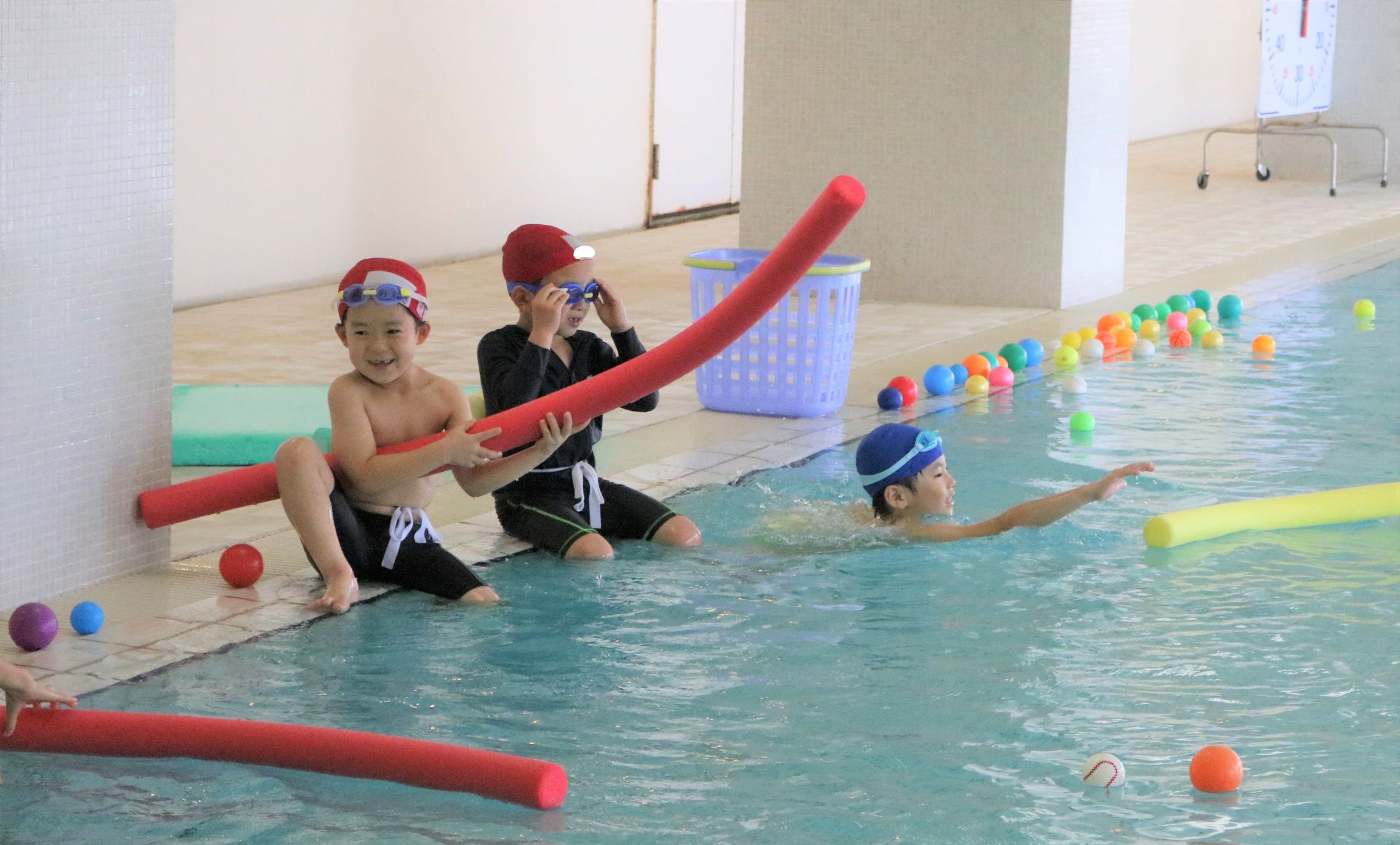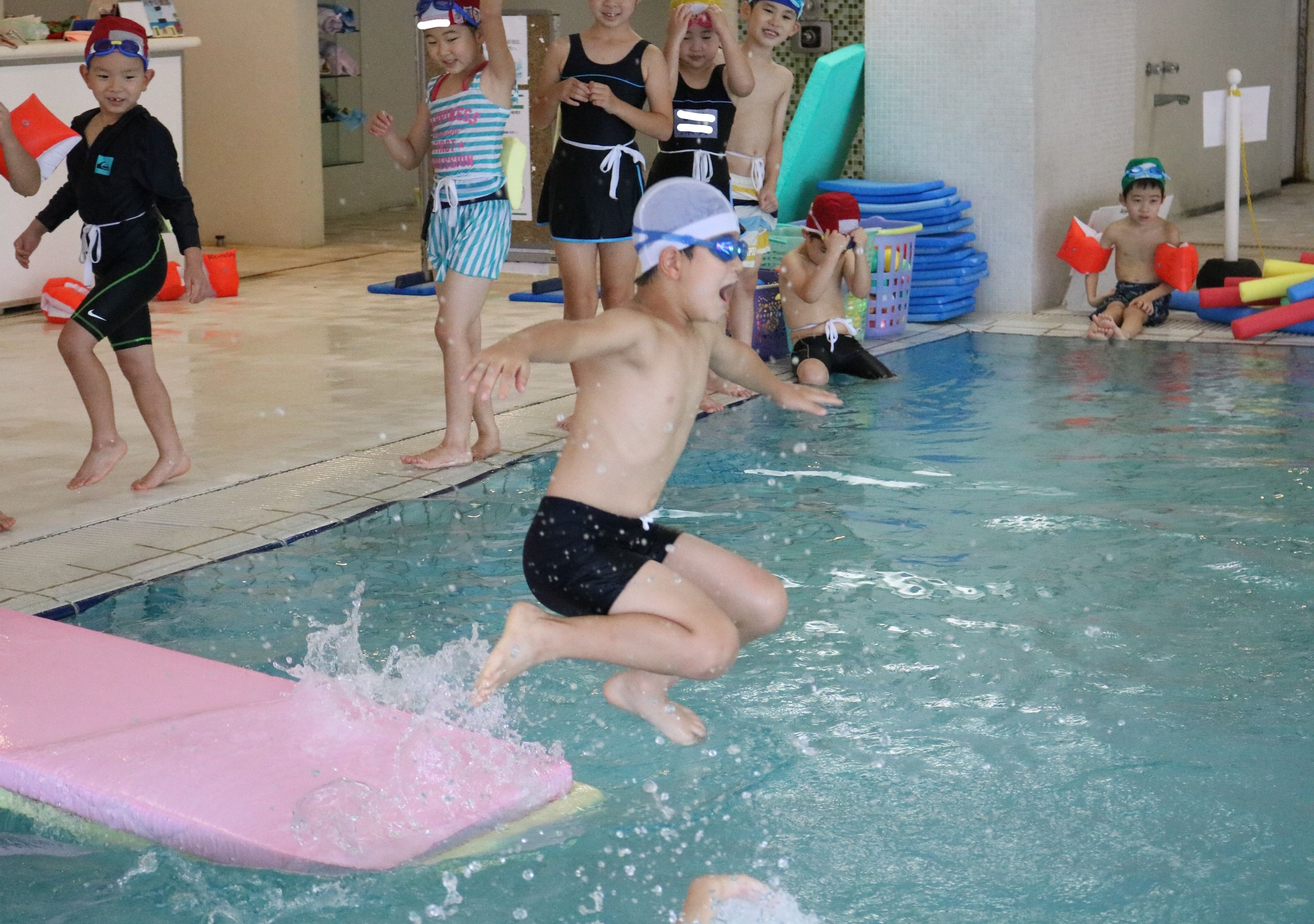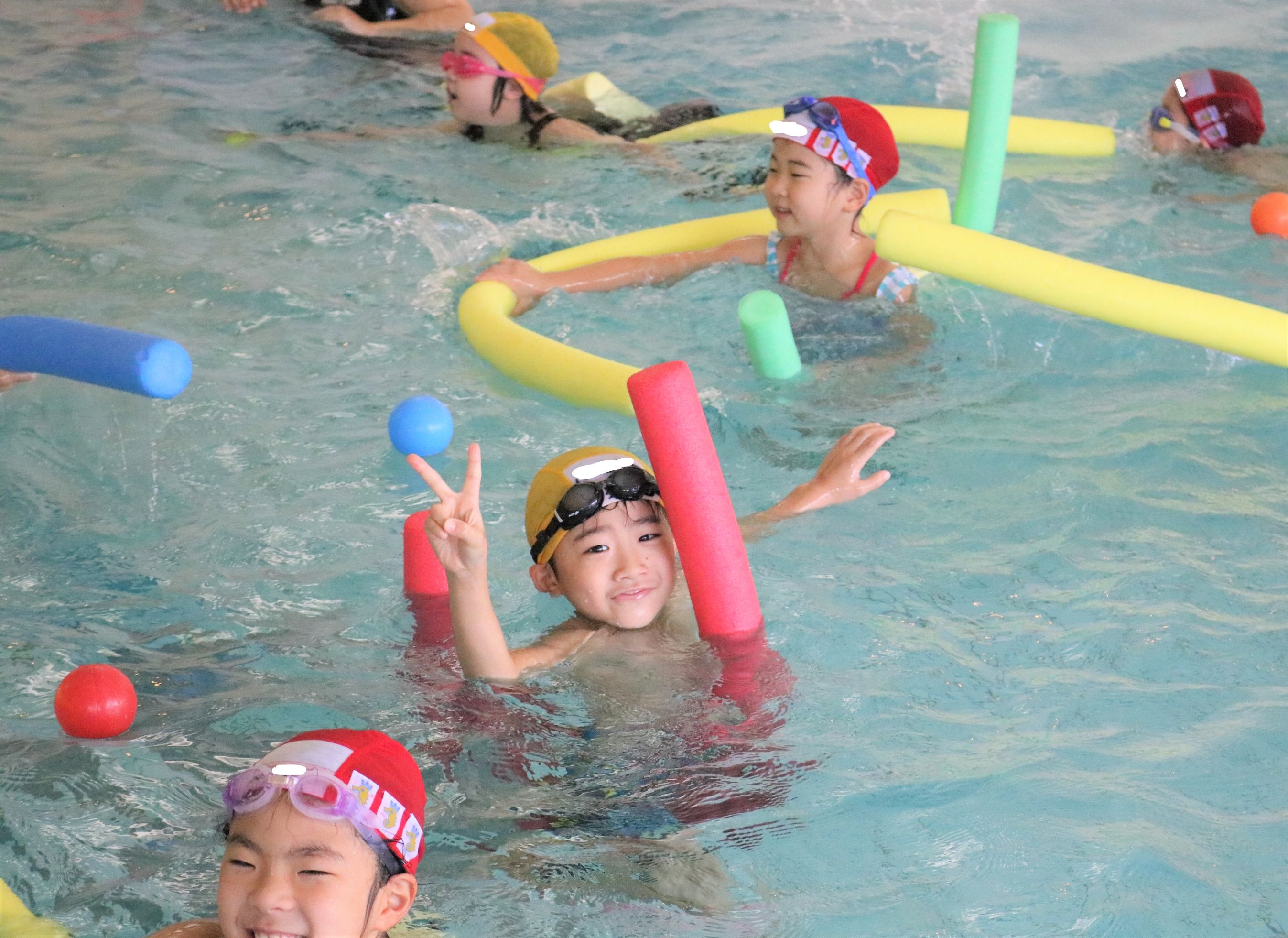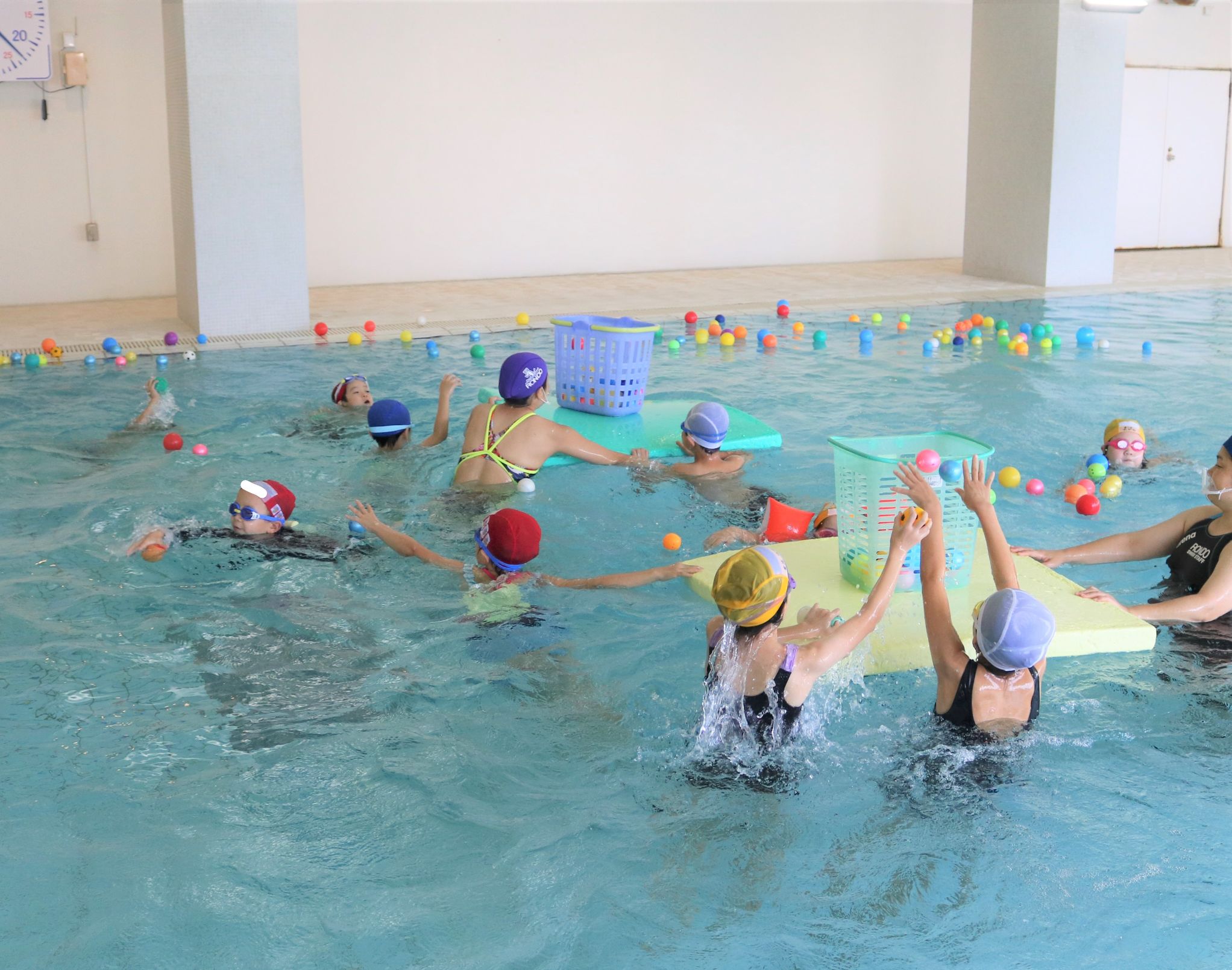 ポールで遊んだり、泳ぎの練習をする子もいました。