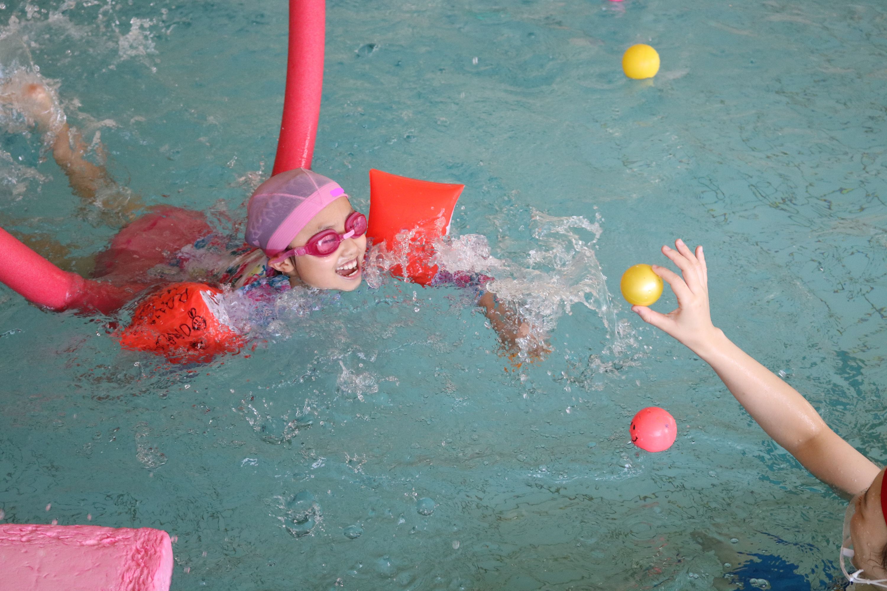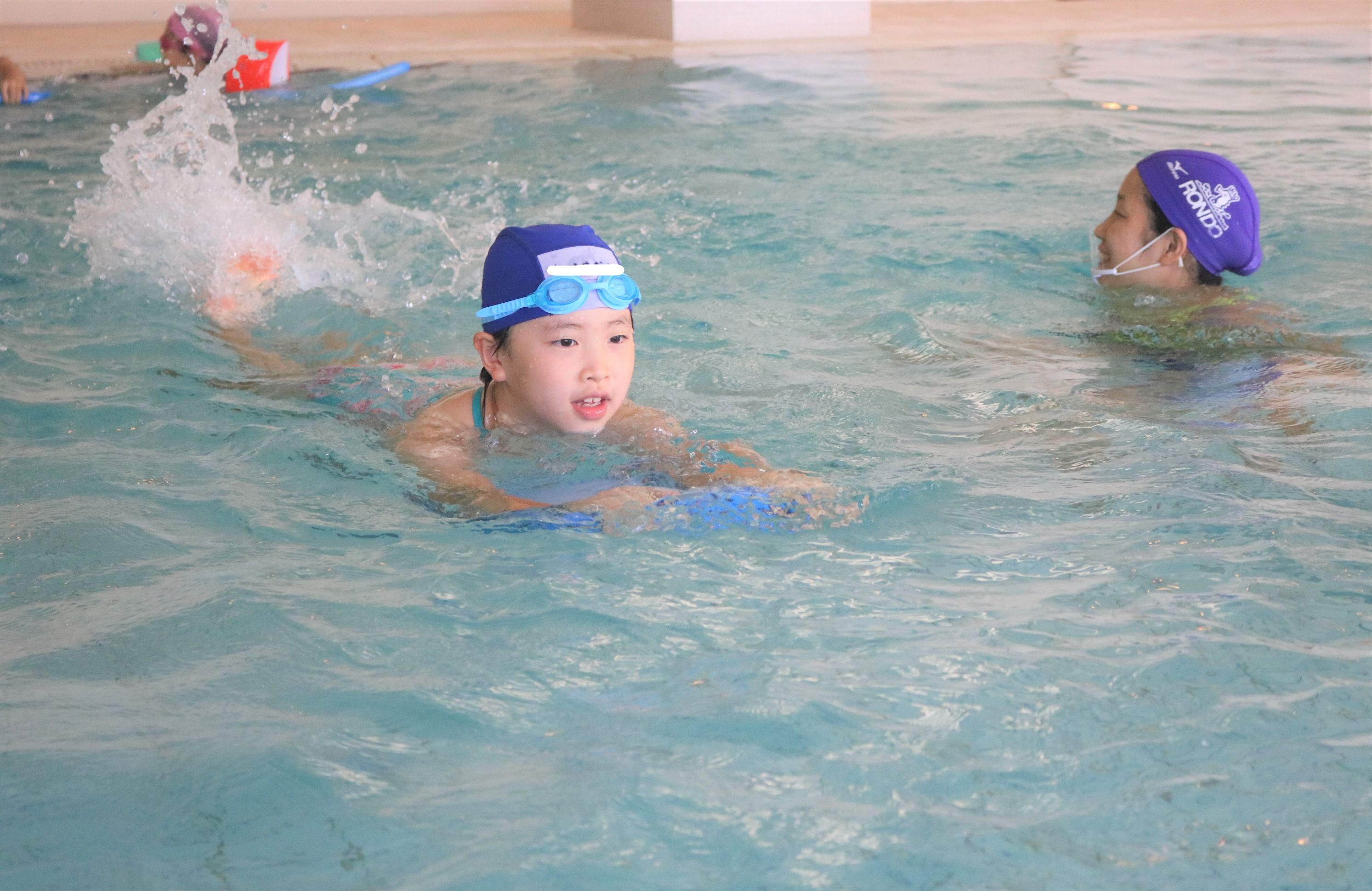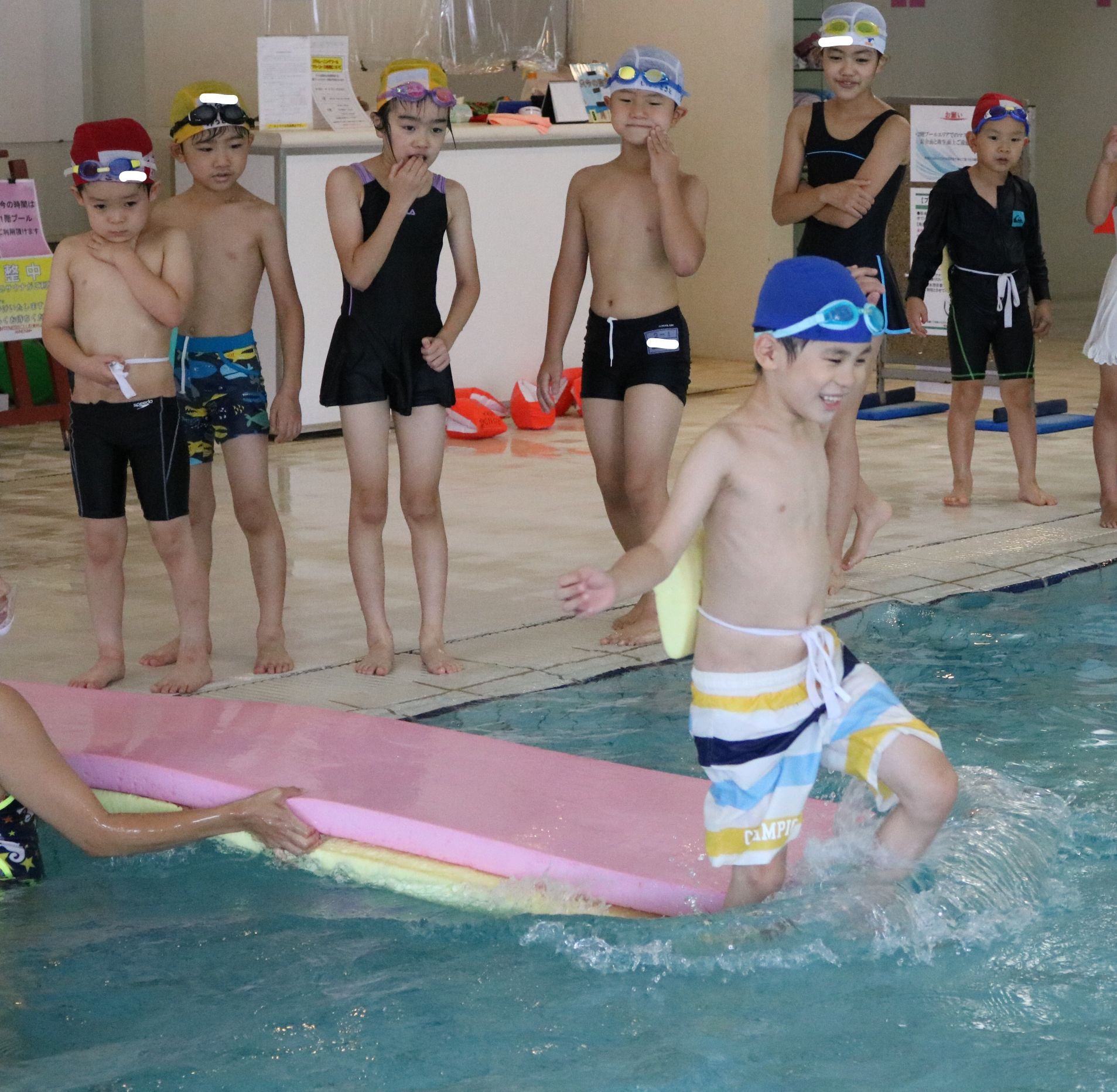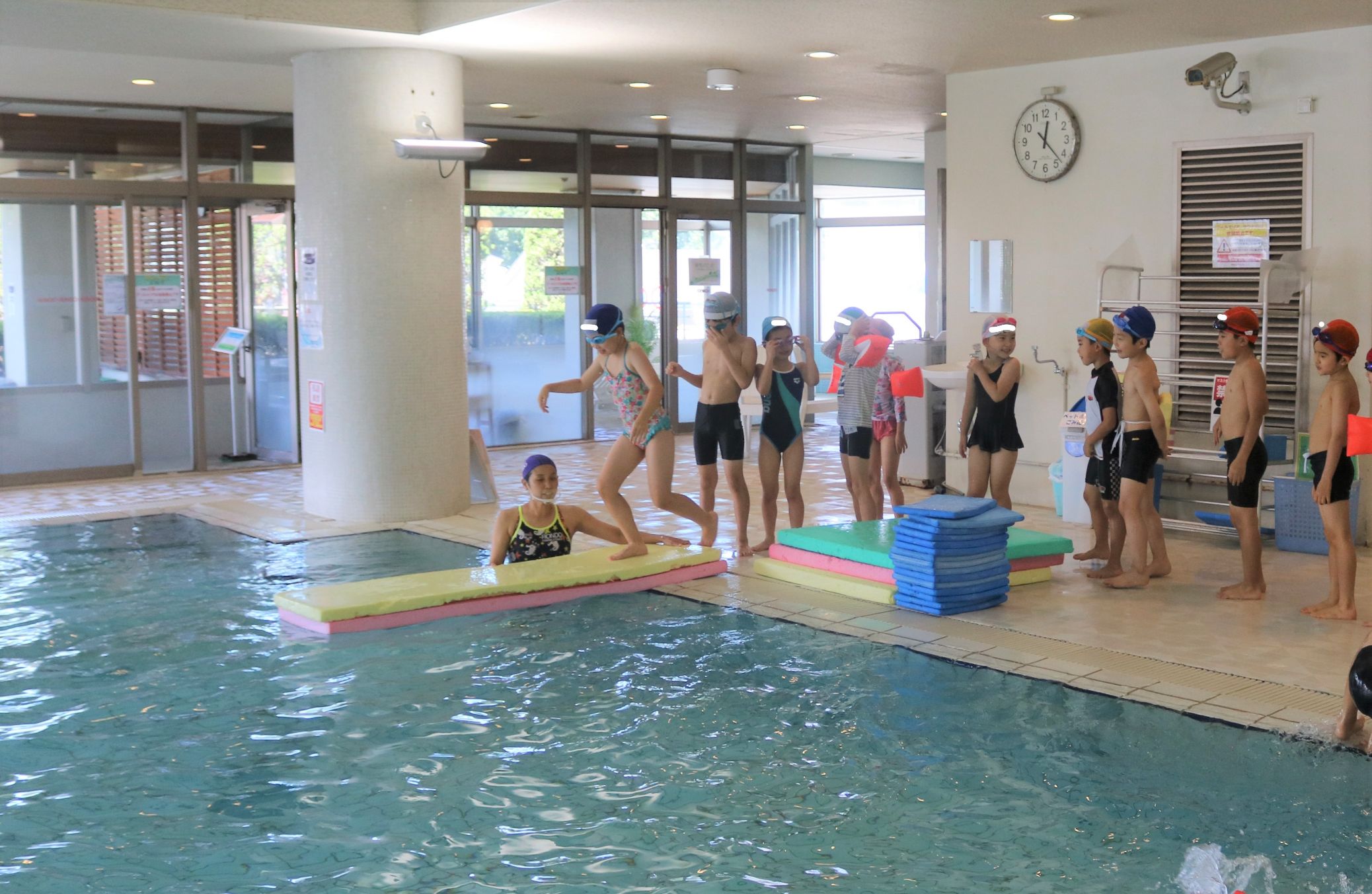 ポールで遊んだり、泳ぎの練習をする子もいました。