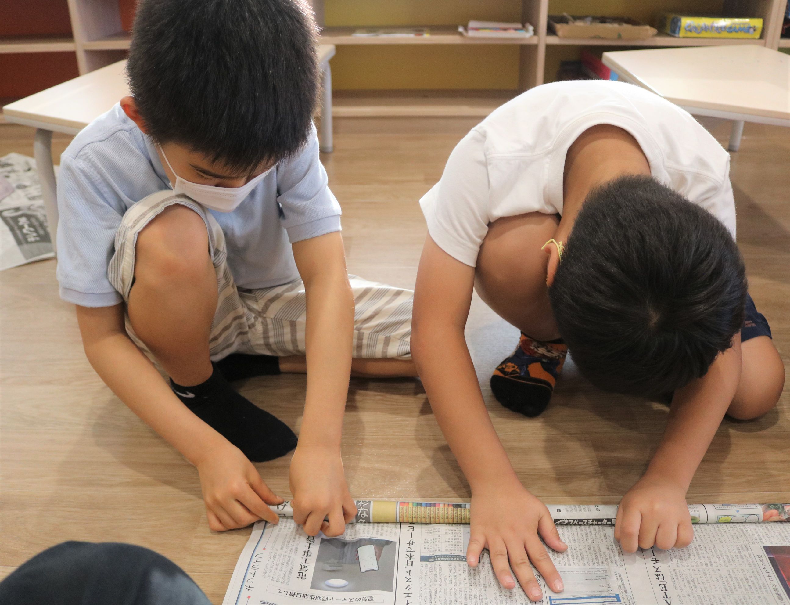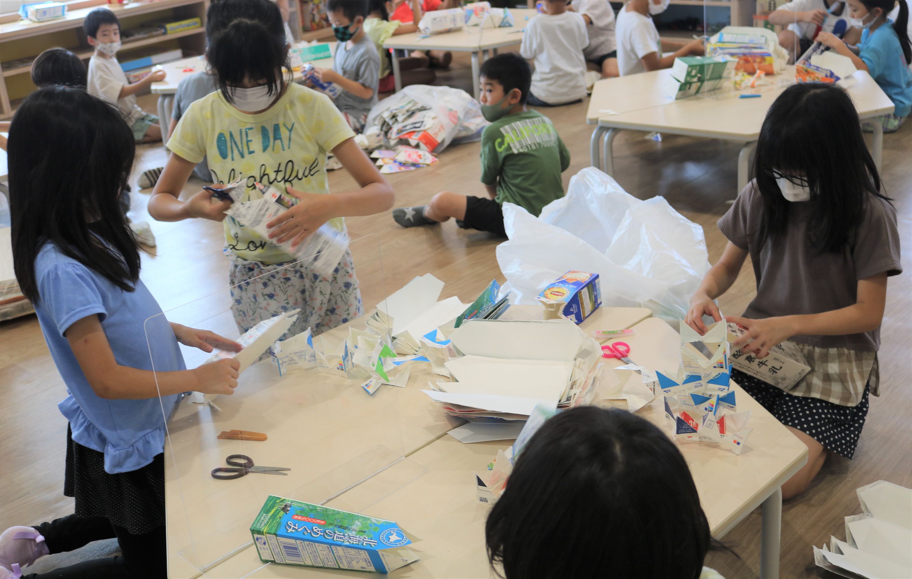 一生懸命に切る人…重ねる人…テープ貼る人…