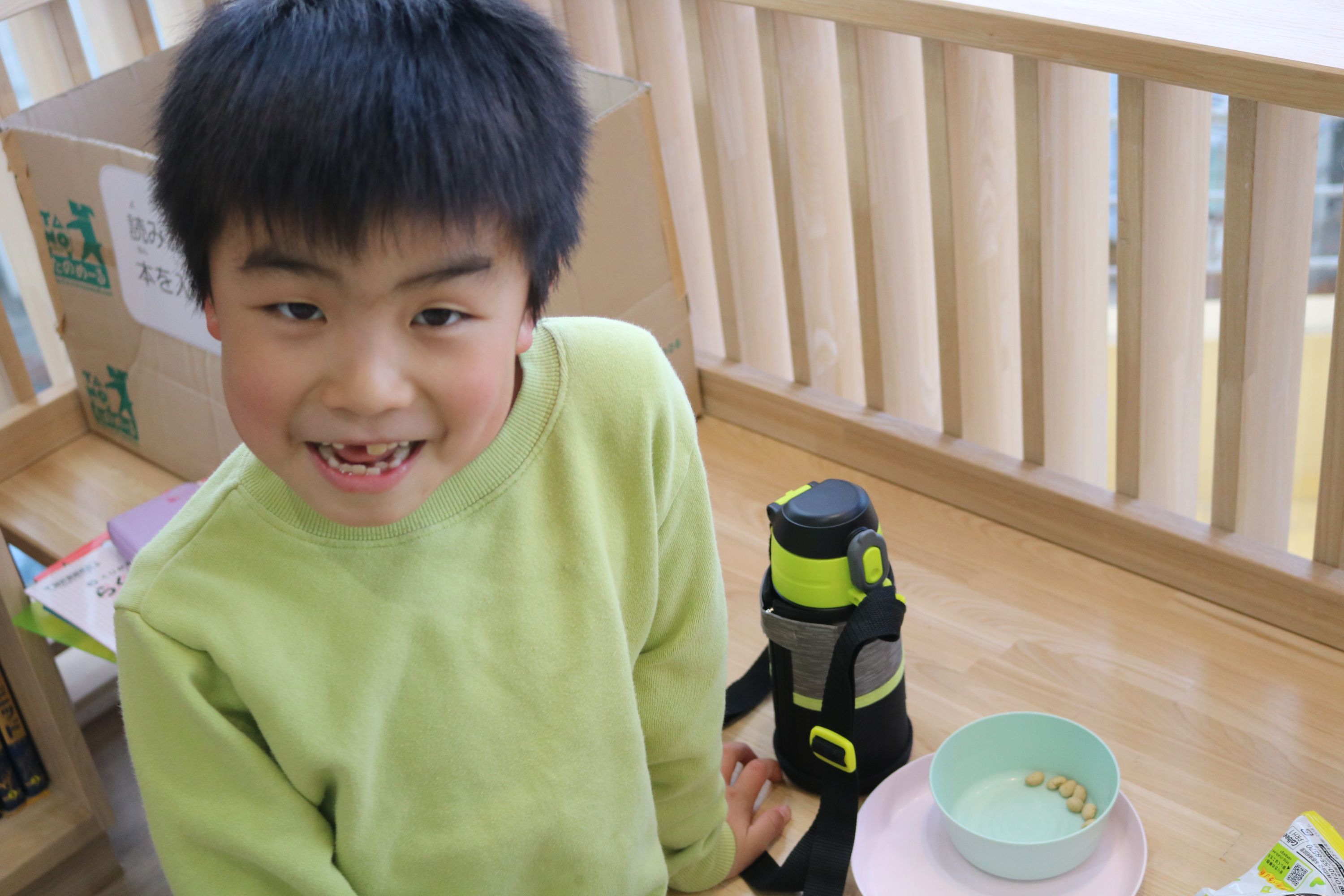 みんなでお豆を掃除したり机を元の場所に戻したりと