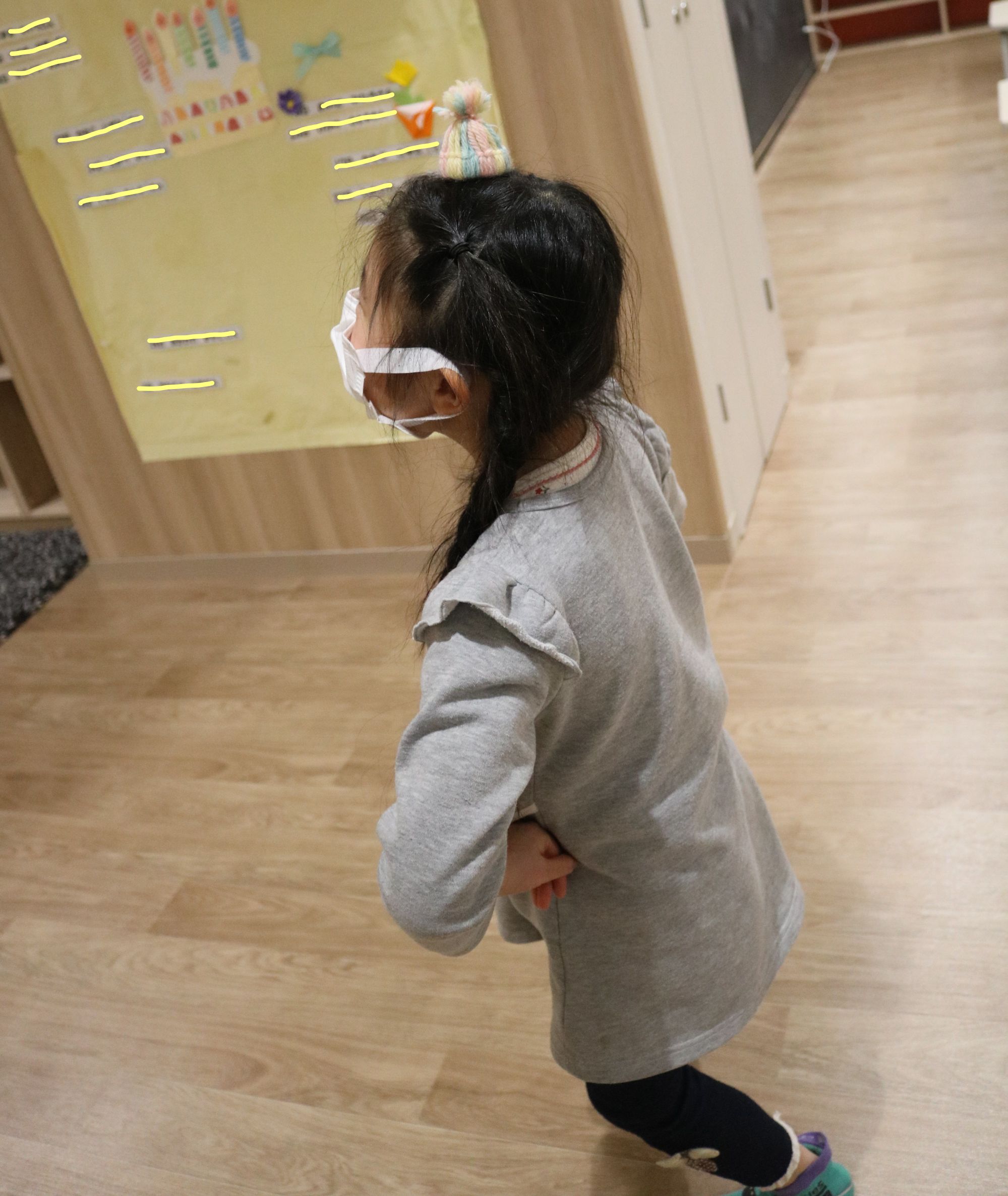 帰る支度に向かったお友だちですが、頭の上にあるのは何かなぁ~
