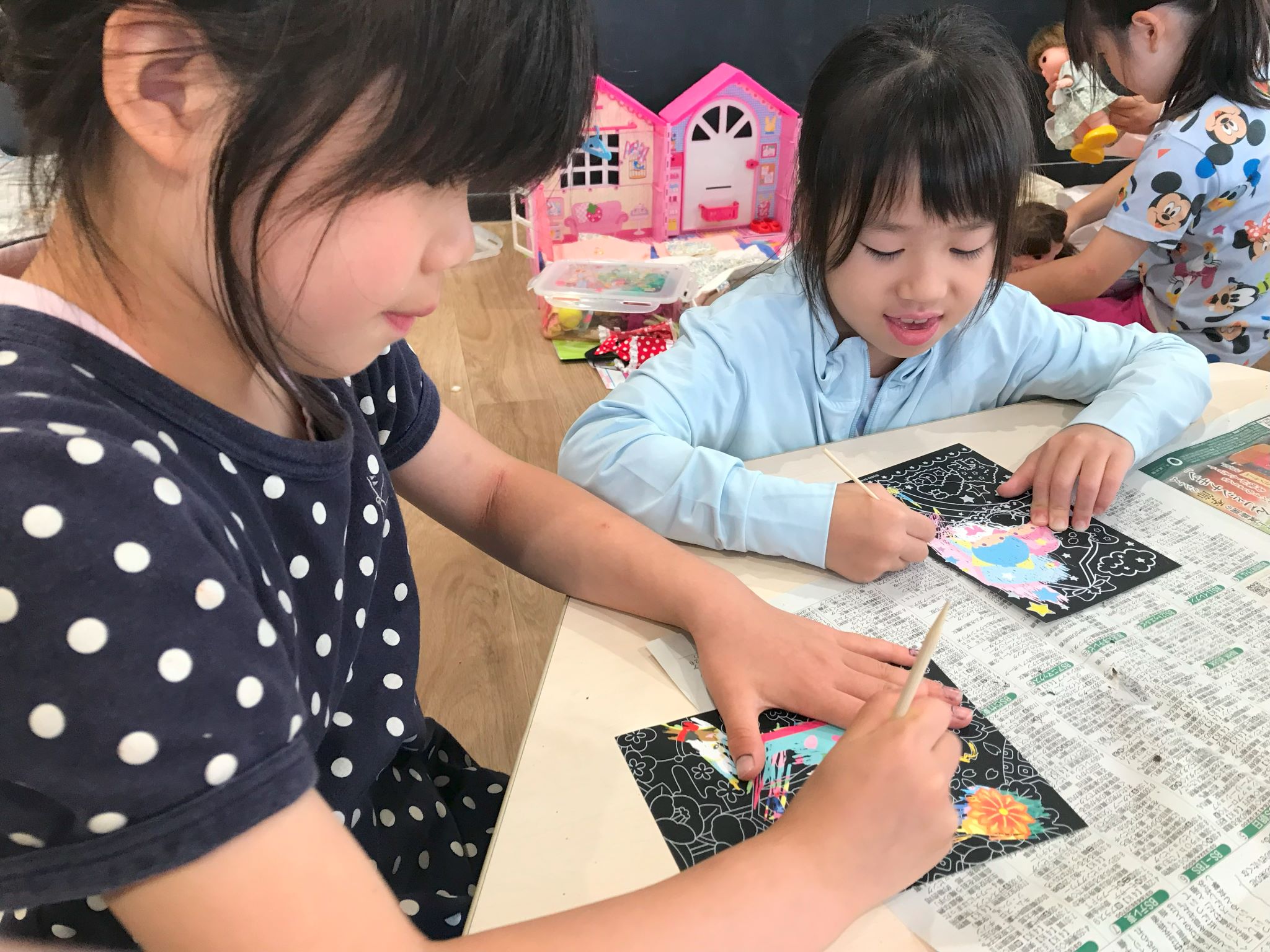【スクラッチアート】ではなにいろがでるかな?と期待を膨らませながら真剣な表情でけずり・・・
