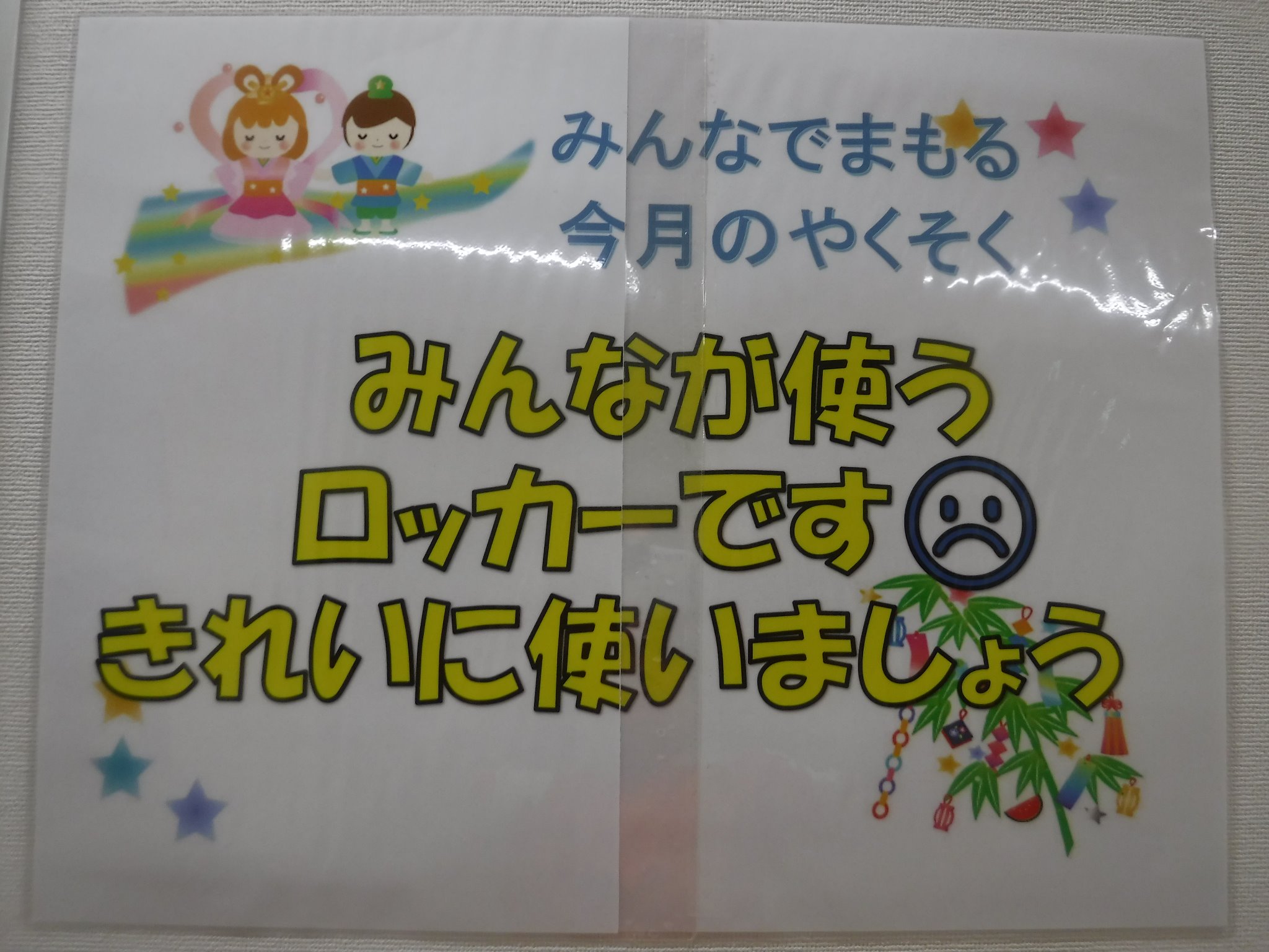 今月のお約束は「みんなが使うロッカーです。きれいに使いましょう」です。