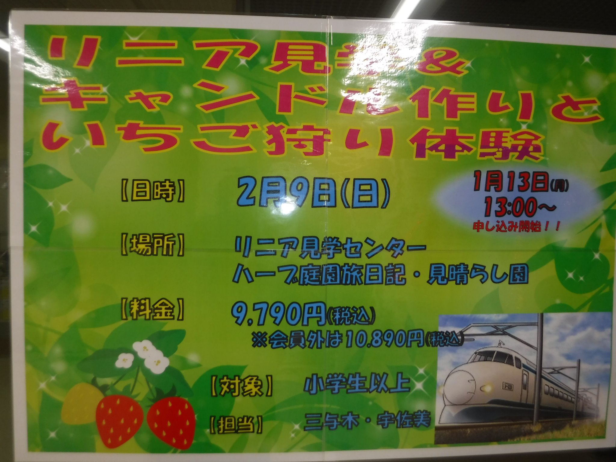 先日配布したリニア見学&キャンドル作りといちご狩り体験の申し込みが本日から開始となりました。