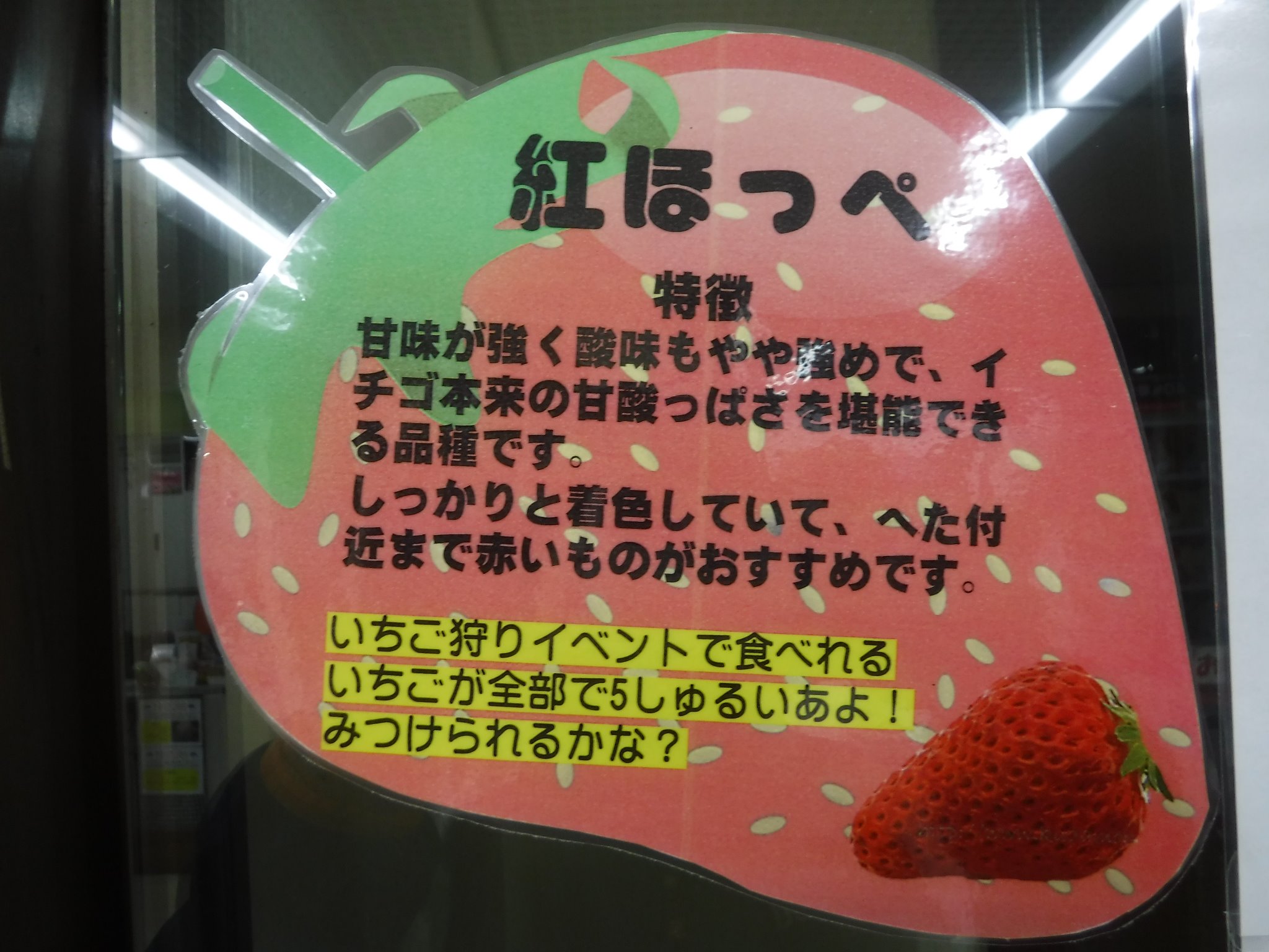 館内にも5種類のいちごの特徴がのった、いちごのPOPが貼ってあります。