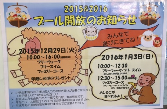 ♦1/3(日)の初泳会は、12:30まで大人の方のみのご利用可能です。