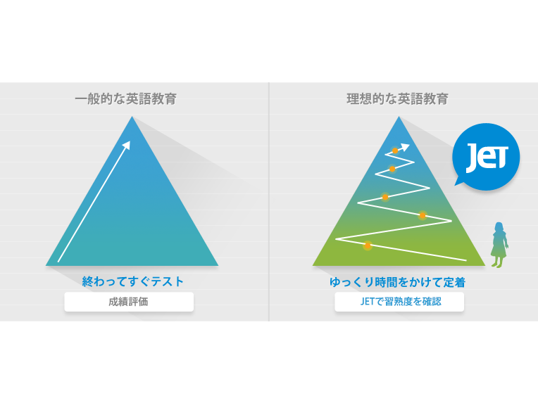 JETとは英語初期学習レベルからTOEIC®までのコミュニケーション英語能力の進捗過程をシームレスに確認できるテストプログラムです。