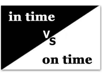 ということで、今日は on time と in timeの意味とその使い分けのお話です。