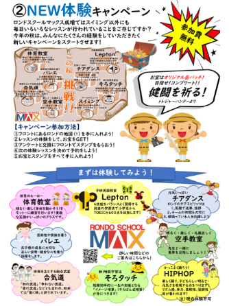 現在受けているレッスン以外のレッスンを体験しよう!というキャンペーンです。