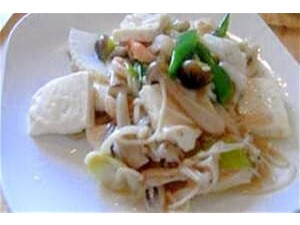 4.豆腐とイカ、エビを加えて再び煮立ったら、水溶き片栗粉を加えてとろみをつけて出来上がり。