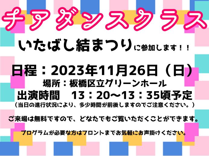 11/26(日)には、『いたばし結まつり』に参加いたします。