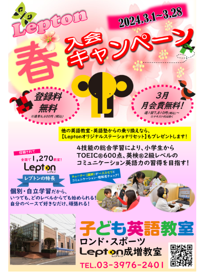 Leptonとは、いつからでも、どのレベルからでも始められる新しい形の個別指導型の子ども英語教室です。