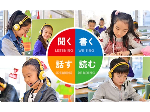 【「聞く」「話す」「読む」「書く」の4技能の総合学習により、小学生からTOEIC®600点(≒英検®2級)レベルのコミュニケーション英語力習得】です。