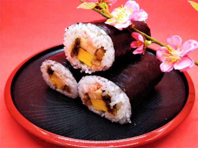 We eat "Ehoumaki" that is thick sushi roll.