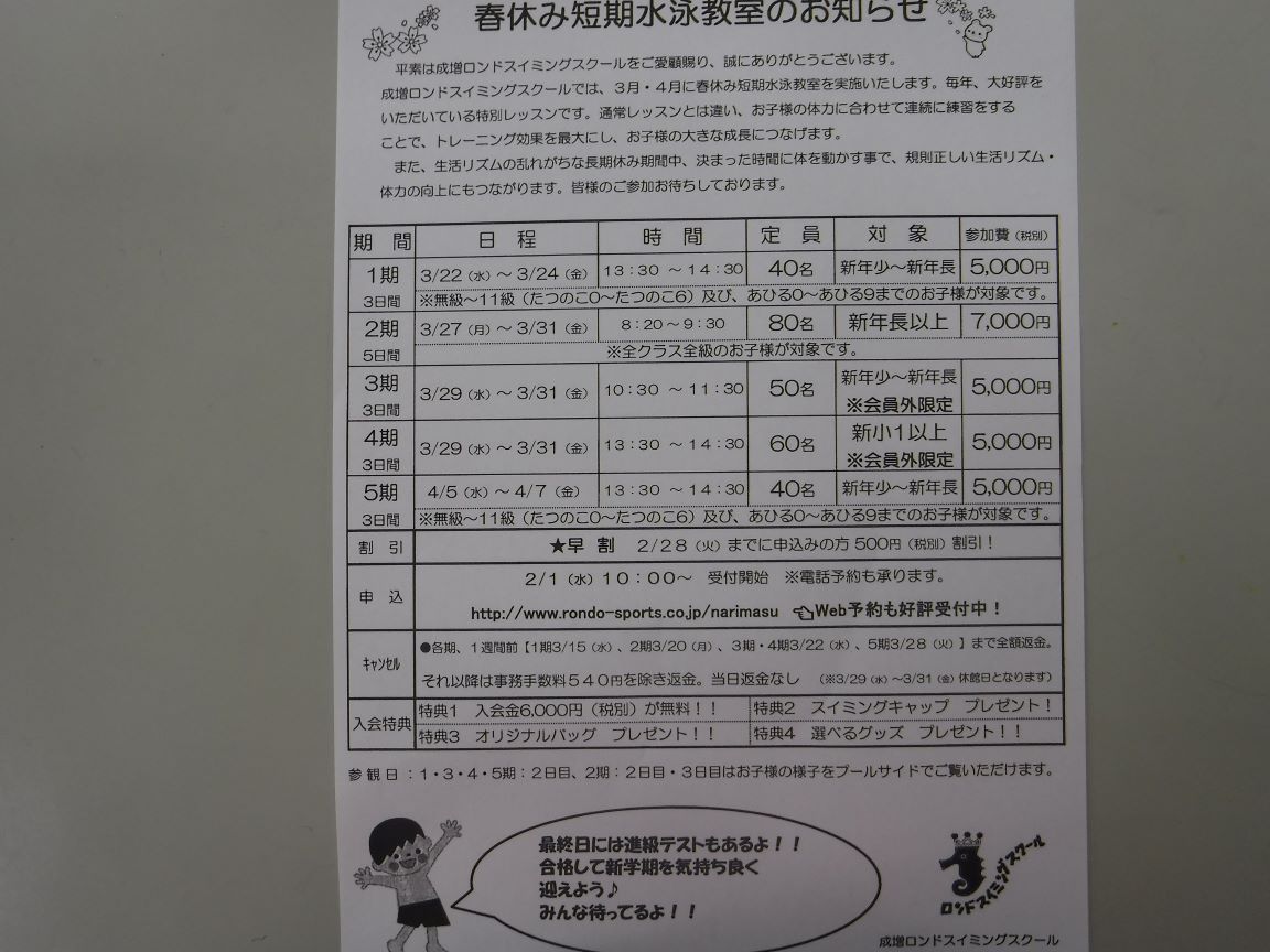 春の短期教室のお知らせです(^◇^)