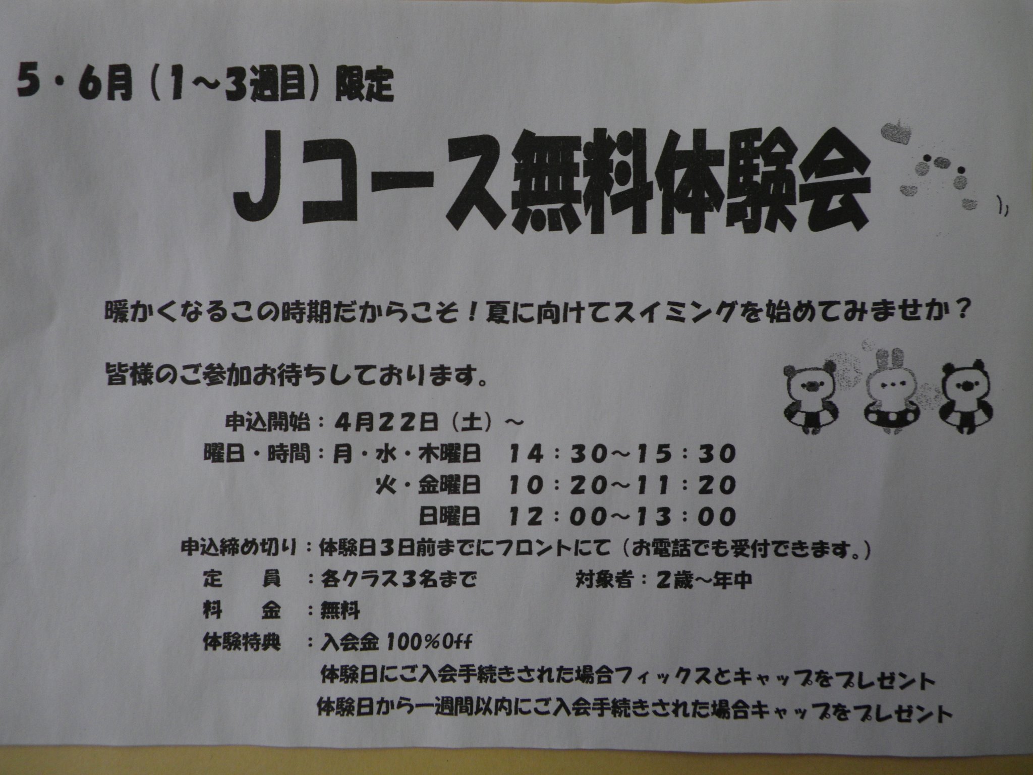本日よりJコース無料体験会の受付が開始となりました!