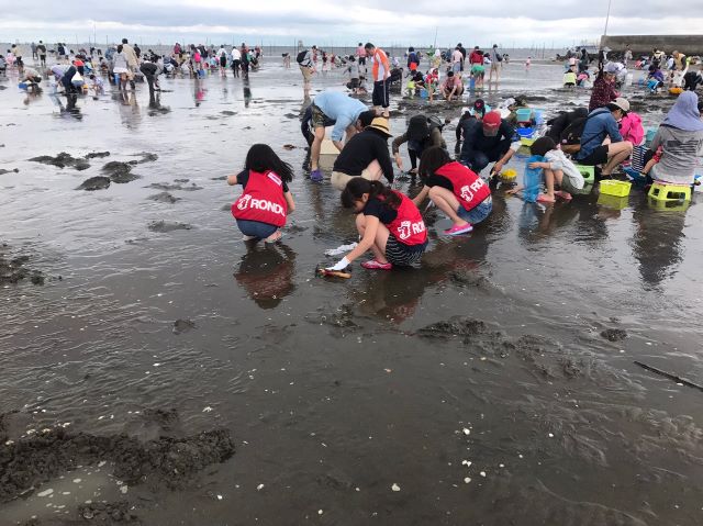 昨日はあいにくの雨でしたが、今日は雨もやみ、涼しく潮干狩り日はちょうどいい日ですね。