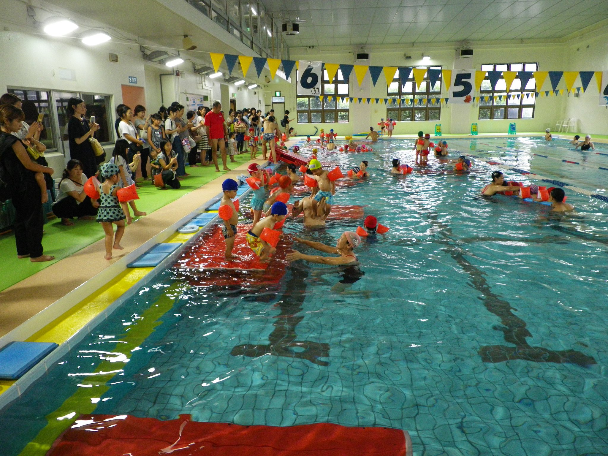 もの凄い人数の保護者の方がプールサイドに来てくださいました。
