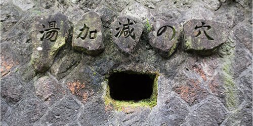 温泉に向かう途中には「湯加減の穴」というのがあって温度をチェックができます。