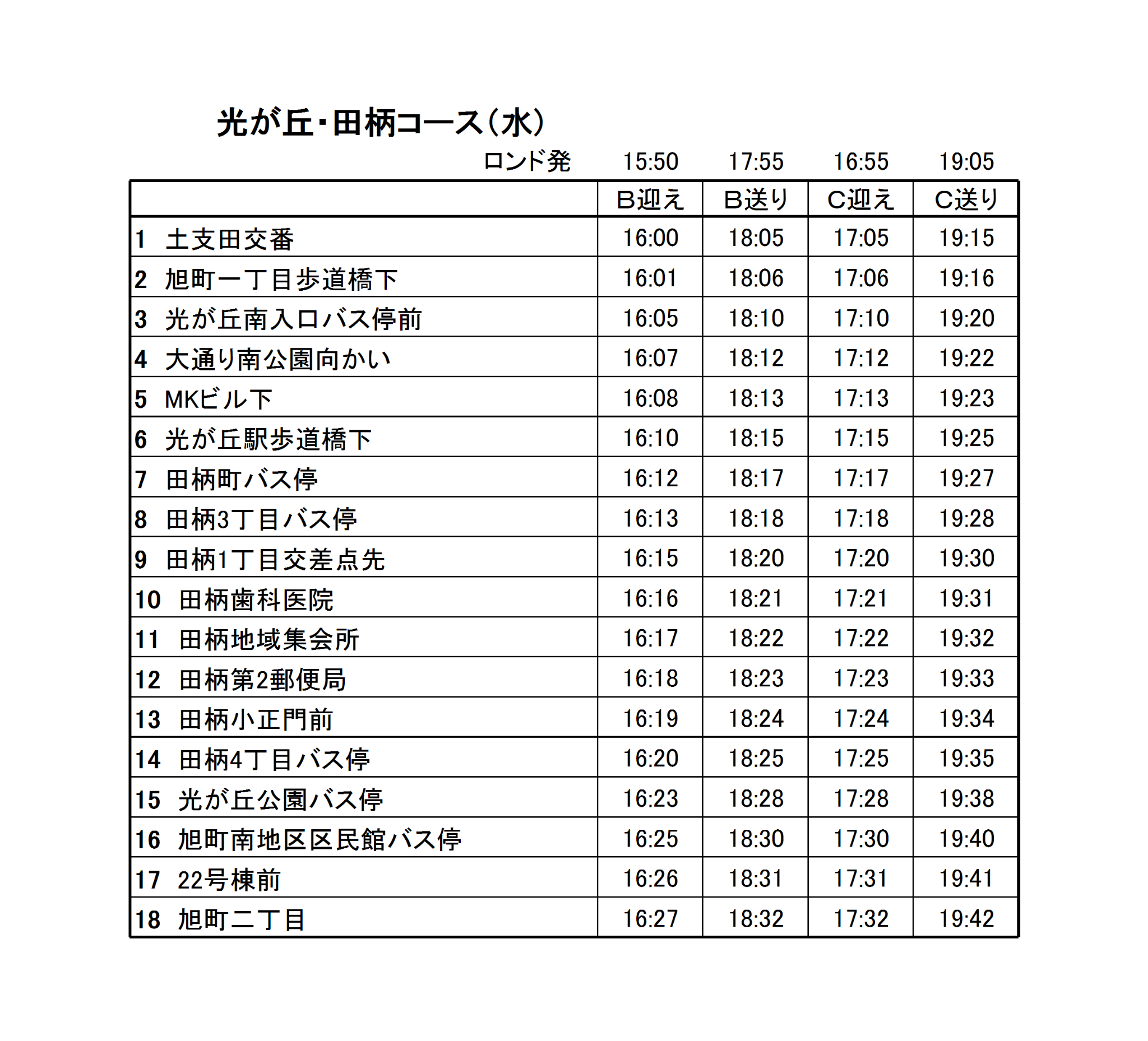 水曜日ハイエースの運行(光が丘・谷原コース)について