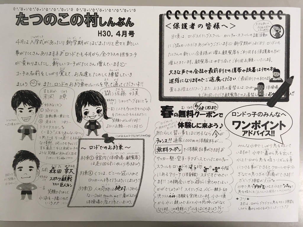 お得な情報やスイミングのワンポイントアドバイスも載ってますよ!