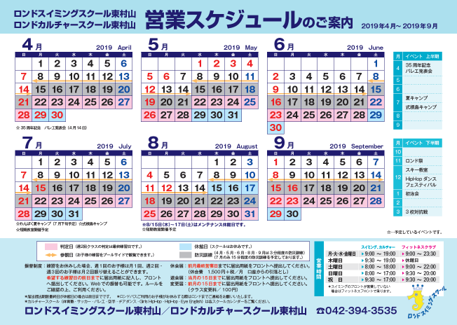 ロンドスイミングスクールは、5/29~5/31まで休館日です。