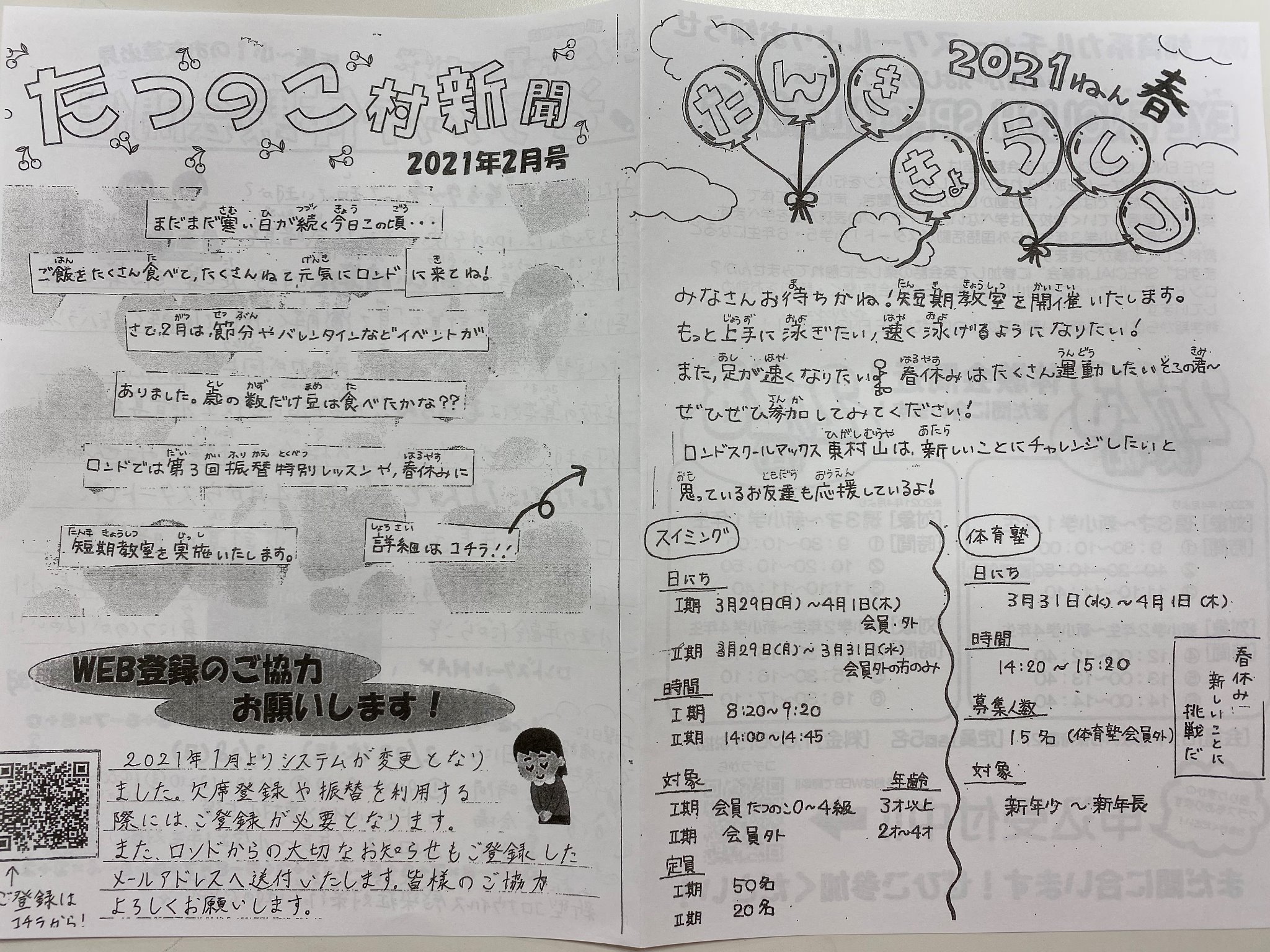 2月17日(水)~たつのこ村新聞2月号を配布しています。